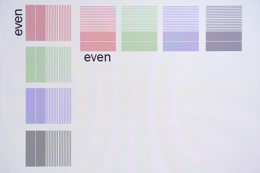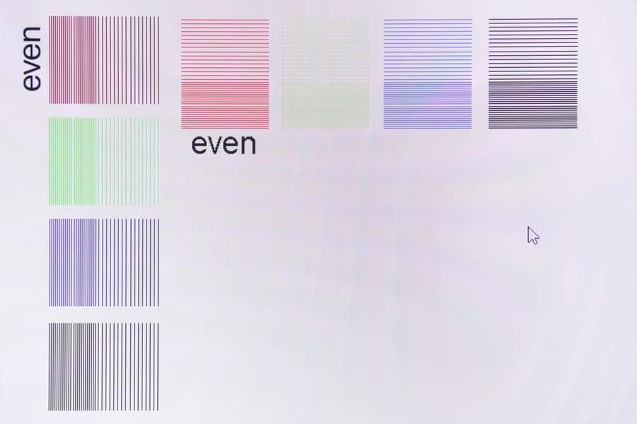 И немного снижается по горизонтали при выводе изображения от внешнего источника видеосигнала (красные вертикальные полоски не такие насыщенные, как горизонтальные, а зеленые вертикальные — чуть размыты).