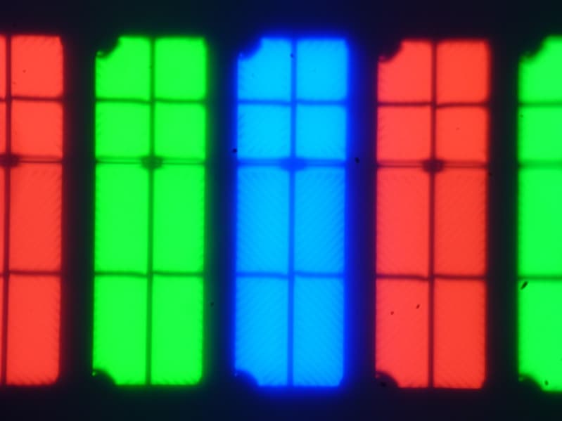 Если рассматривать изображение с достаточно близкого расстояния, то на качество картинки будут оказывать особенности строения матрицы. Рассмотрим микрофотографии (масштаб различается):