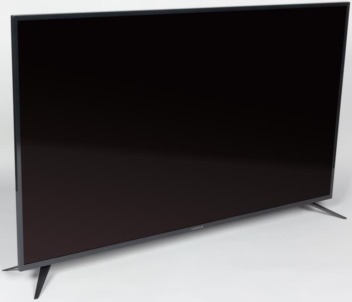 Второе и третье место в рейтинге дизайна поделили два оставшихся ТВ. Оба имеют относительно толстый корпус и простенькие ножки галочкой, но у Harper ножки хотя бы изготовлены из алюминиевого сплава, не то что хиленькие пластиковые у Xiaomi, едва обеспечивающие ему какую-то устойчивость. Оба ТВ с толстыми по современным меркам рамками. Да, у Xiaomi рамки стальные, но, зачем-то их сделали просто шлифованными, из-за чего они бликуют и отвлекают зрителя (минус за эргономику).