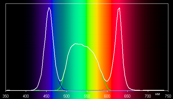 Видно, что компоненты хорошо разделены, чем и достигается уширенный цветовой охват.