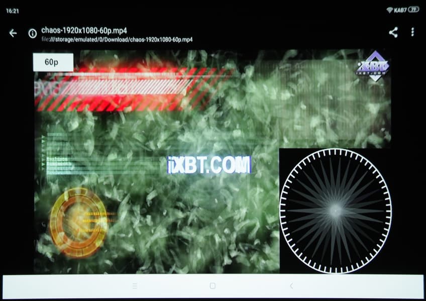 Тестовые ролики на определение равномерности чередования кадров помогли выявить, что при воспроизведении файлов частота обновления всегда равна 60 Гц. При этом в случае файлов с 24, 25 и 50 Гц кадровой частоты часть кадров имеет увеличенный интервал. В стандартном для видео диапазоне (16—235) отображаются почти все градации оттенков, только в светах есть небольшой завал.
