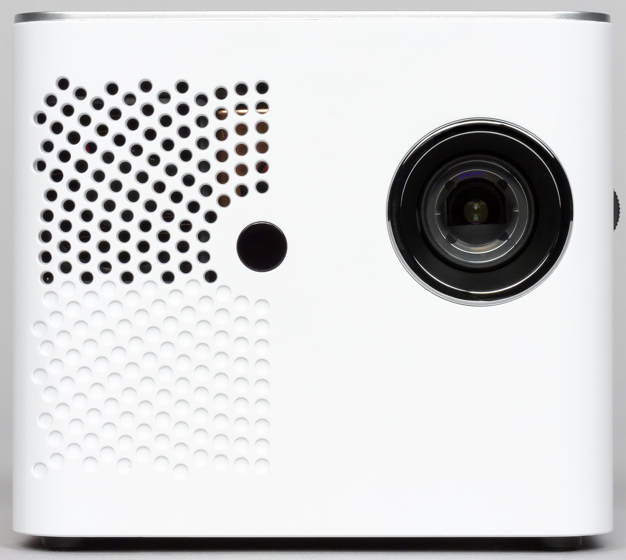 Спереди слева от объектива — вентиляционная решетка, через которую выдувается теплый воздух, и окошко единственного ИК-приемника.