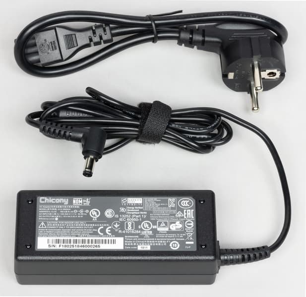 В комплект поставки входят недлинный сетевой кабель питания и блок питания с неотсоединяемым низковольтным кабелем питания.