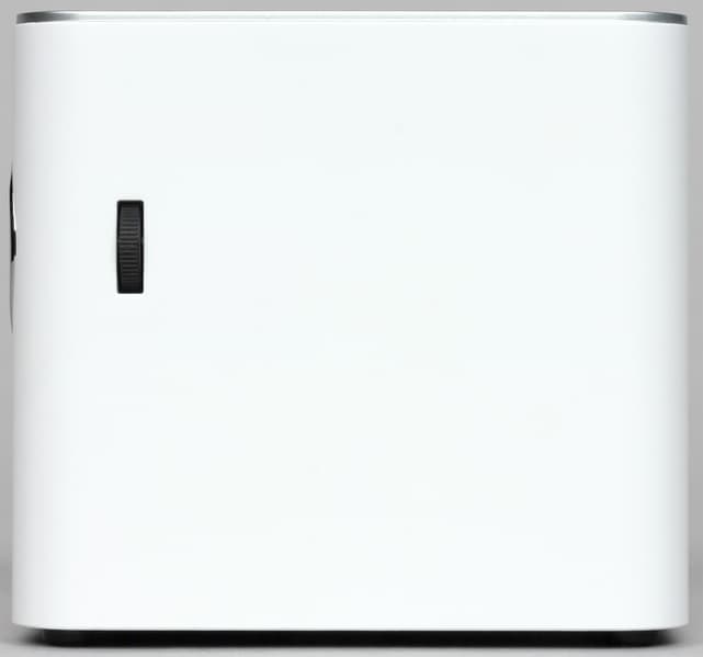 Корпус проектора изготовлен из пластика: верхняя панель имеет матовое серебристое покрытие, днище — черное и матовое, а по бокам, спереди и сзади покрытие пластика белое матовое. Кольцо ниши объектива также пластиковое с зеркальным металлическим покрытием. Внутри ниша объектива черная матовая.