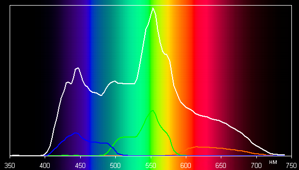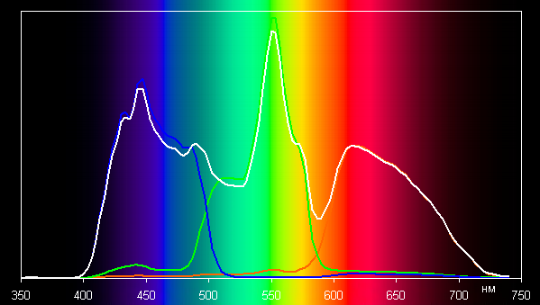 Отметим, что в целом это типичные спектры для проекторов с источником света в виде ртутной лампы высокого давления.