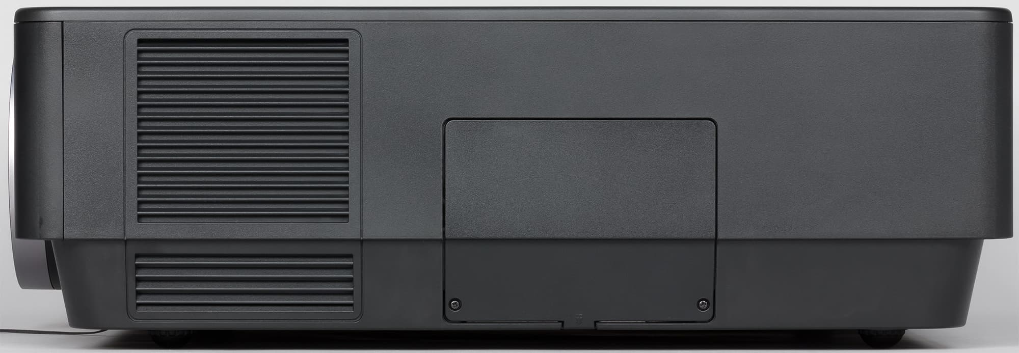 На левом боку расположены вентиляционные решетки и крышка лампового отсека. Лампу можно менять, не снимая проектор с потолочного кронштейна.