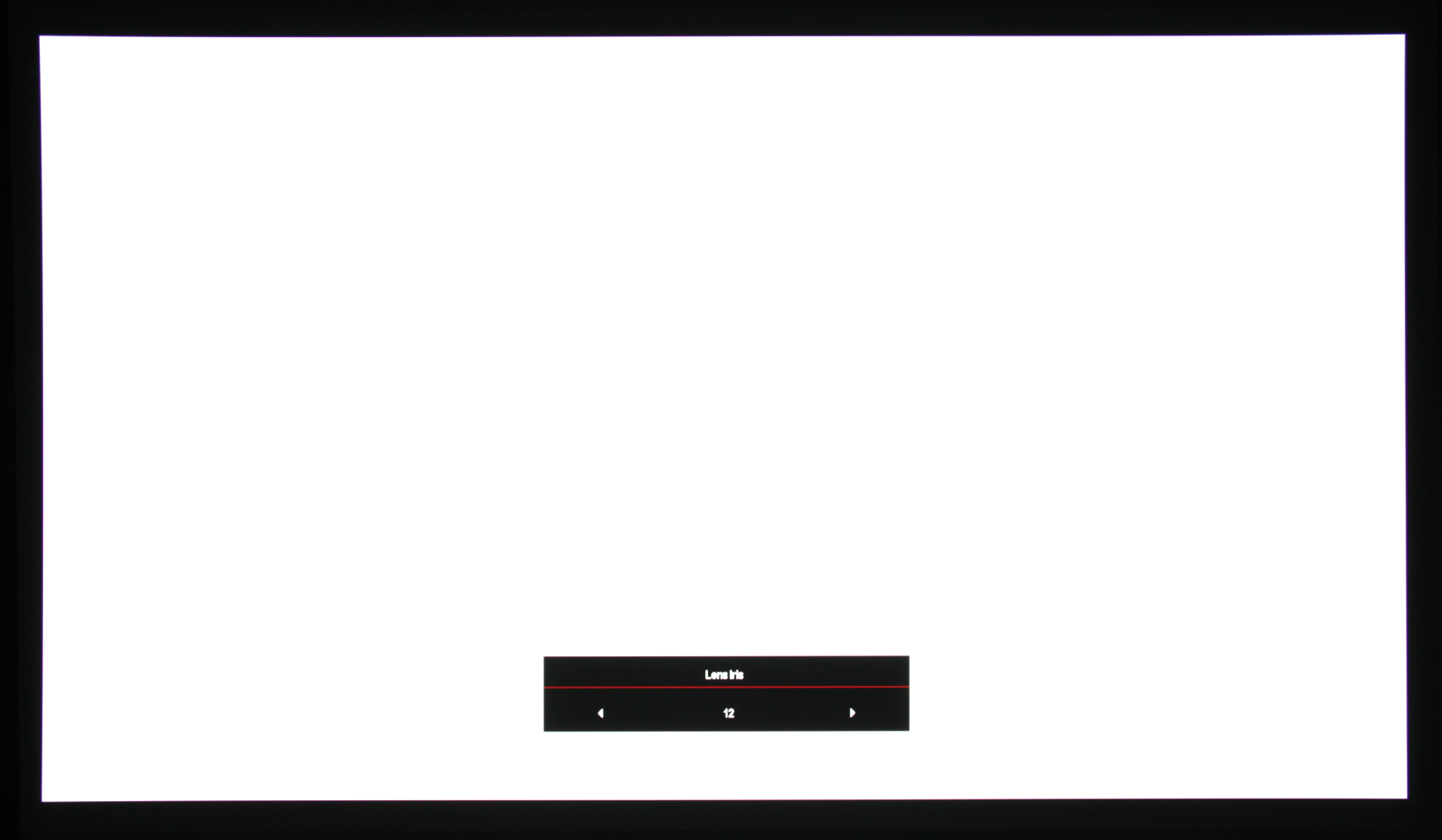 Для корректного сравнения данного проектора с другими, имеющими фиксированное положение объектива, измерения проводились при сдвиге объектива вверх примерно на 50% (низ изображения находился примерно на оси объектива). Результаты измерений (если не указано иное, то установлено минимальное фокусное расстояние, лампа включена на высокой яркости, выбран профиль Bright и диафрагма максимально открыта):