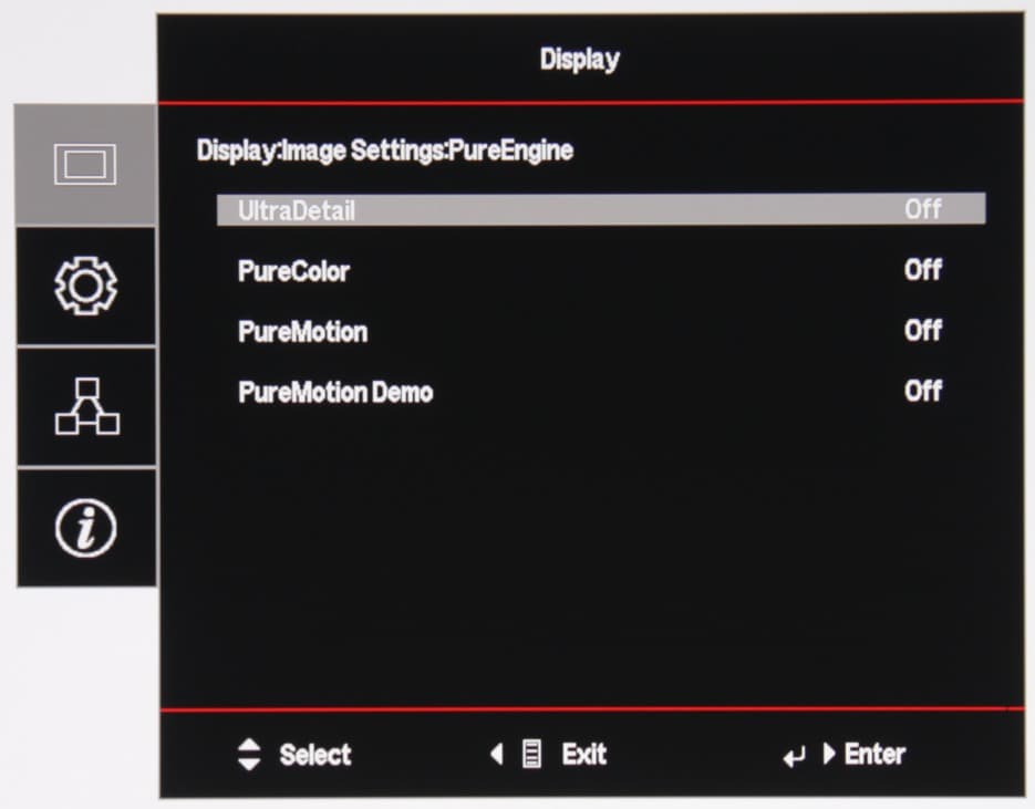 Многочисленными настройками можно подправить цветовой и яркостный баланс, степень повышения контурной резкости и т. д., и т. п. Внесенные изменения до принудительного сброса настроек сохраняются для входа и типа видеосигнала.