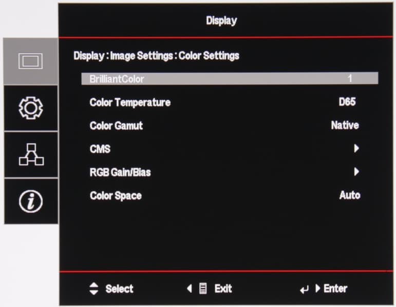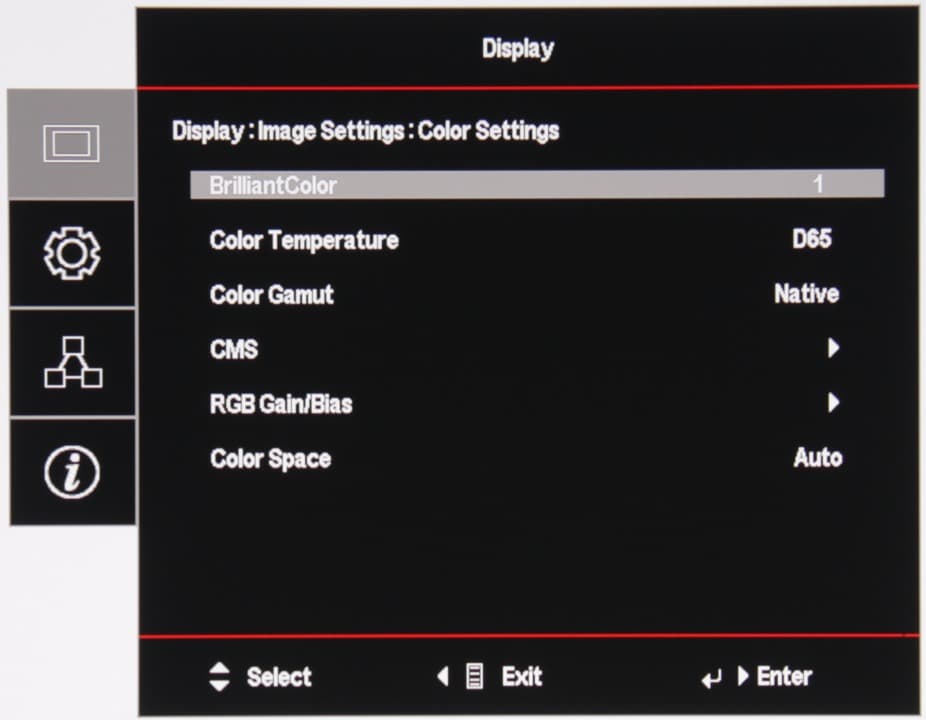 Цветовой охват меняется в зависимости от значения настройки Color Gamut. При выборе Native он самый широкий, но все равно лишь немного шире sRGB: