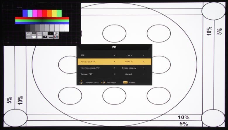 В режиме PIP изображение дополнительного окна в одном из четырех углов экрана по выбору выводится в одном из двух размеров, видимо, с сохранением исходных пропорций.