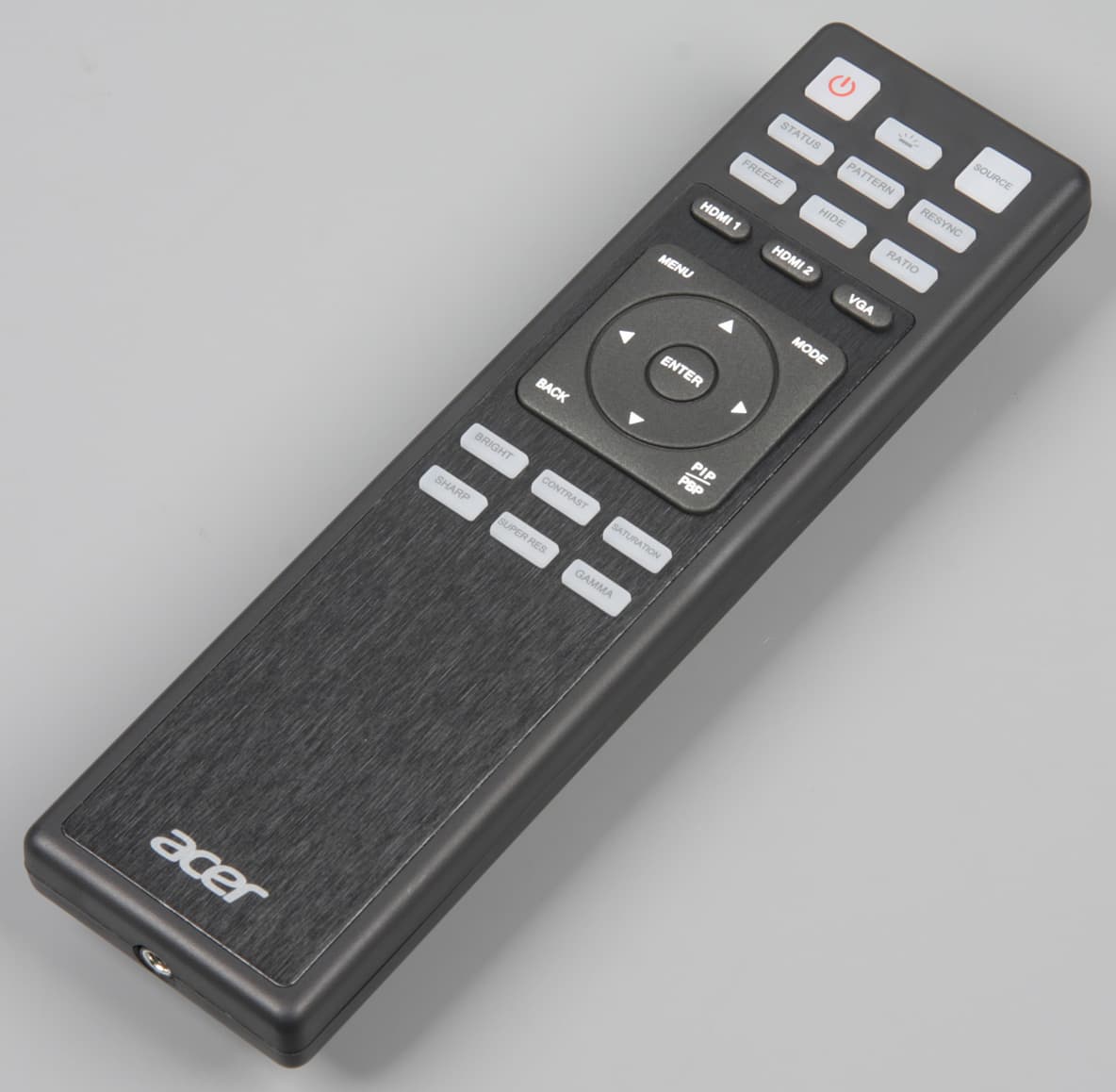 Корпус ИК-пульта дистанционного управления изготовлен из пластика с снаружи матовой поверхностью и без покрытия. Пульт довольно крупный. Кнопки в основном некрупные, а надписи на них мелкие и трудно читаются. Материал кнопок — это упругий напоминающий резину пластик. Ход кнопок короткий, при срабатывании кнопок раздается выраженный щелчок. Есть достаточно яркая светодиодная подсветка, включающаяся при нажатии только на кнопку включения подсветки, что неудобно, к тому же эта кнопка в темноте не фосфоресцирует, как это бывает. Выключается подсветка через 10 секунд после последнего нажатия на кнопки пульта.