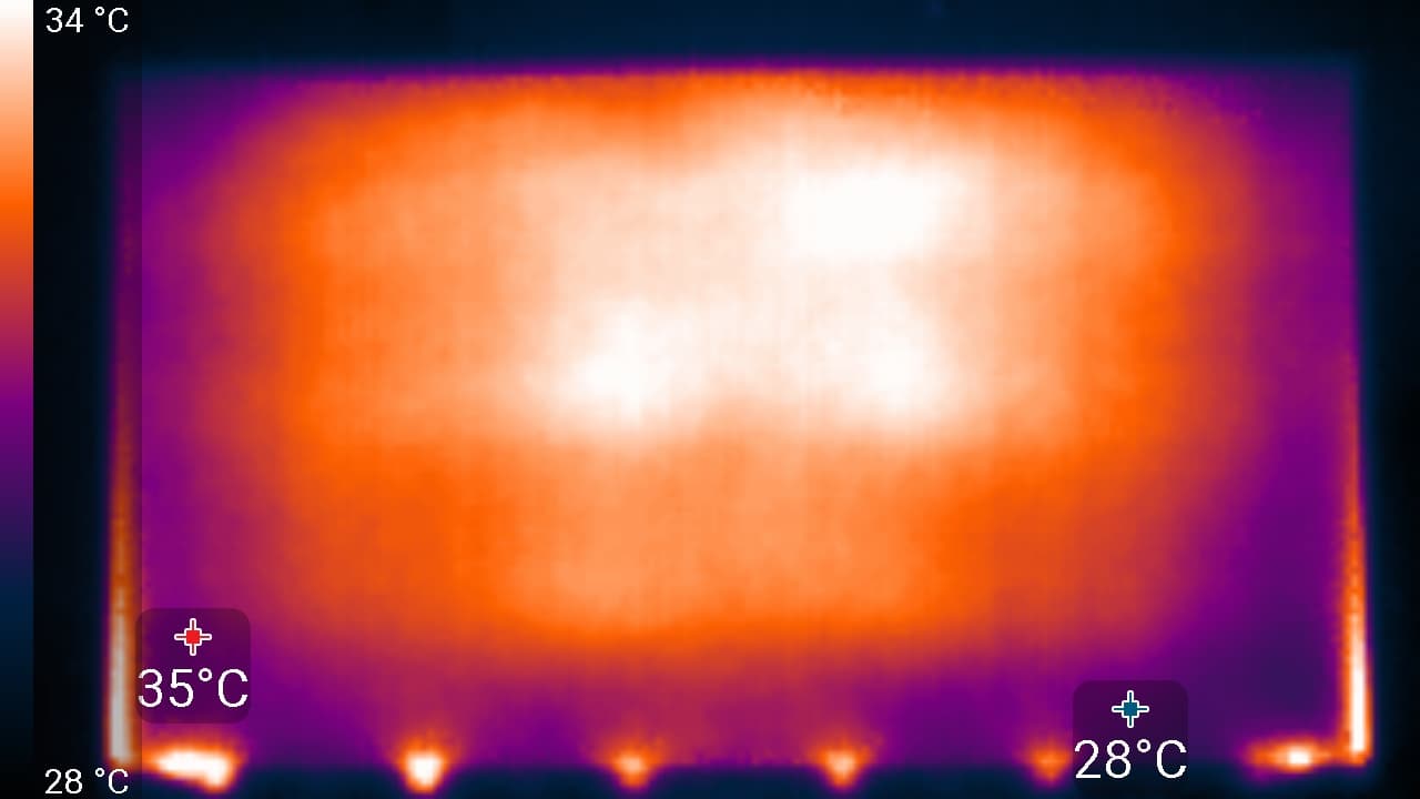 Судя по распределению областей нагрева, в данном телевизоре используется задняя подсветка, не поделенная на независимо управляемые зоны.