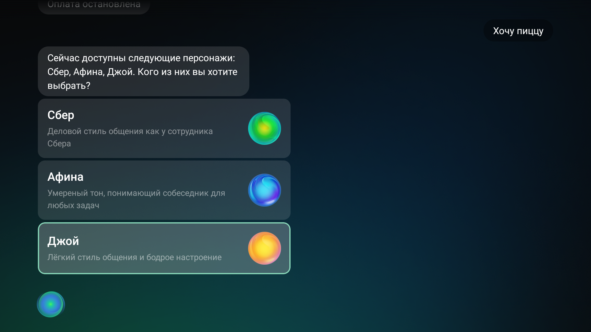В экосистеме Сбера этих персонажей называют виртуальными ассистентами Салют. Во время общения с персонажами иногда история диалога выводится на экран автоматически, иногда в этом нет необходимости, но пользователь может вывести историю принудительно, дважды нажав на кнопку вызова ассистента.