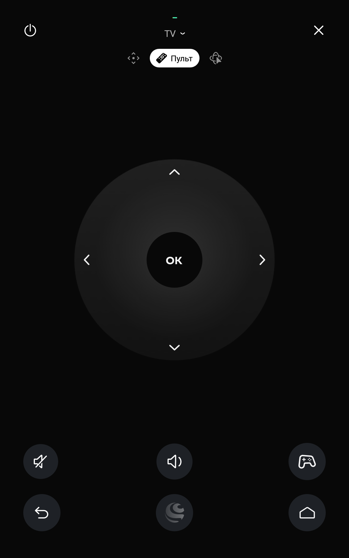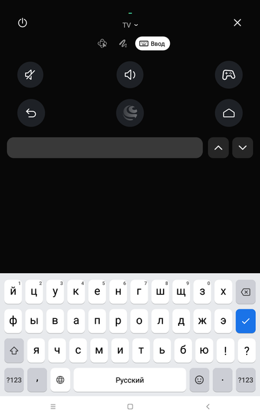 В приложении Сбер Салют применительно к телевизору с Салют ТВ доступны несколько разновидностей пультов дистанционного управления, включая виртуальный игровой джойстик.