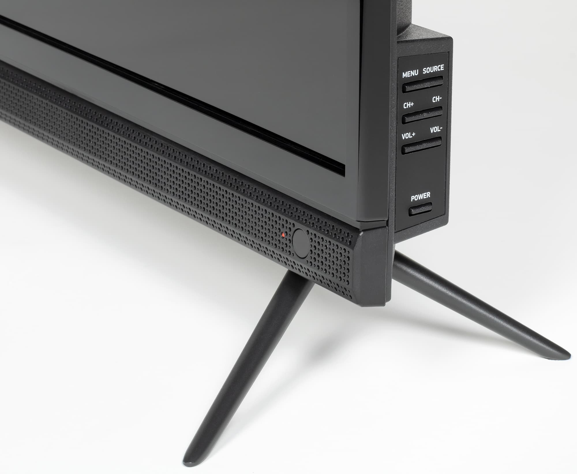 На кожухе сзади под правую руку есть четыре механические кнопки (три из них двухпозиционные), с помощью которых можно ограниченно управлять телевизором без пульта ДУ.