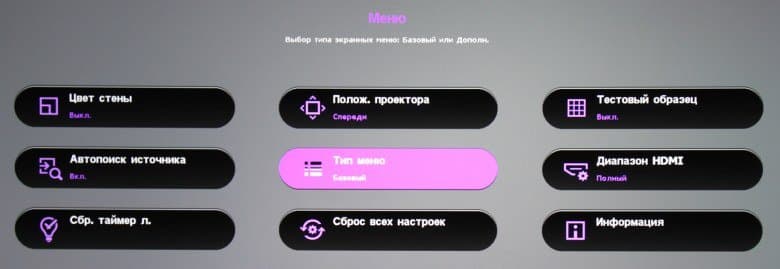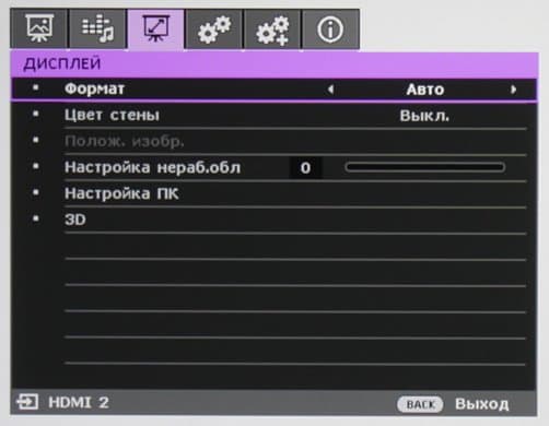Режимов геометрической трансформации пять штук, они позволяют подобрать оптимальный режим для анаморфированной картинки, для форматов 4:3 и LetterBox. Есть и автоматический режим, в котором проектор сам выбирает способ трансформации. Параметр Настройка нераб.обл определяет обрезку по периметру (с увеличением).