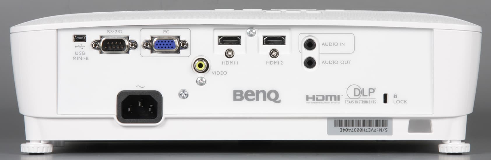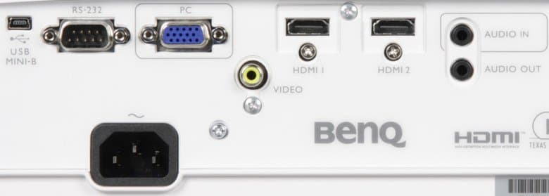 Разъемы стандартные. В проектор встроен громкоговоритель, поэтому есть аналоговый аудиовход, также входы HDMI способны принимать звук в цифровом виде. Для подключения внешней аудиосистемы нужно использовать выход Audio Out, если этот разъем задействован, то встроенные громкоговорители отключаются.