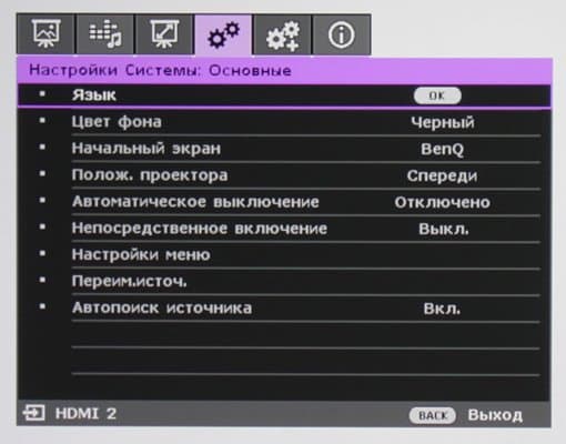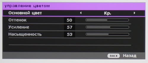 Отметим наличие тонкой подстройки цветовой температуры и возможность настройки цветов с помощью регулировки яркости, насыщенности и оттенка шести основных цветов. Значения настроек изображения можно сохранить в двух пользовательских профилях. Предустановленные наборы настроек хранятся в нескольких профилях, которые можно брать за основу при создании пользовательских профилей. Параметр Мощность лампы определяет яркость лампы, при выборе Экономичный она понижается, как и интенсивность охлаждения, а при выборе SmartEco мощность лампы подстраивается в соответствии с выводимым изображением — для темных сцен яркость немного уменьшается.
