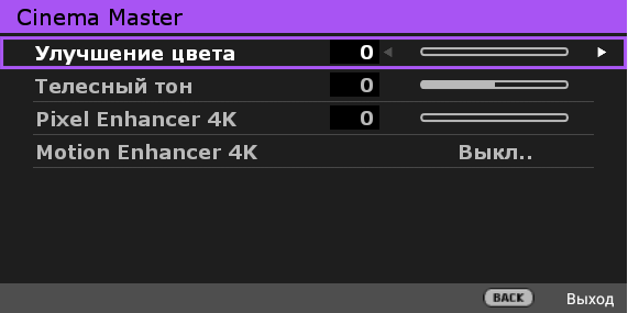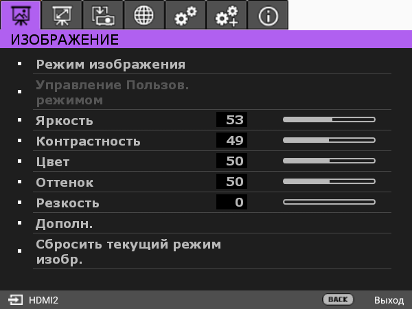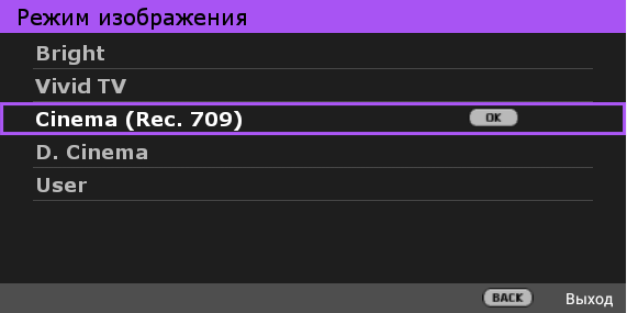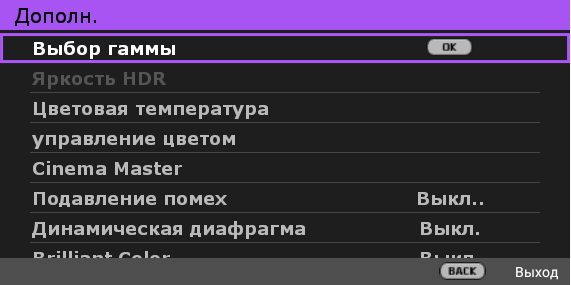 Проектор сам определяет сигнал HDR и автоматически переключается в соответствующий режим. Однако в случае кодирования цвета RGB оно определяется правильно, но вывод идет как для цветоразностного сигнала.