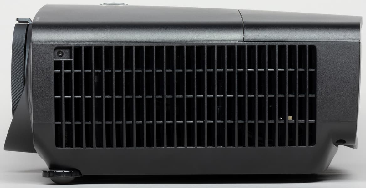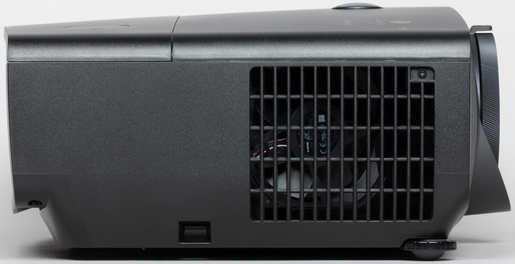 Дизайн строгий, он соответствует домашнему кинотеатральному проектору высокого класса. Внешние панели корпуса проектора изготовлены из пластика с черным матовым покрытием, кроме фронтальной панели — она имеет темно-серо-серебристое покрытие. Компоновка симметричная — ось объектива совмещена с продольной осью корпуса проектора, — что приятно с эстетической точки зрения и несколько облегчает установку проектора.