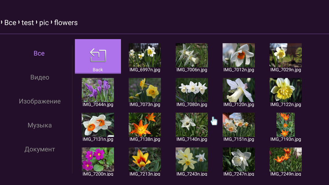 В проектор встроен мультимедийный плеер, который с USB-носителей умеет воспроизводить аудио- и видеофайлы, растровые графические файлы и файлы популярных «офисных» форматов. Примечательно, что в режиме просмотра Все, файловый браузер проектора показывает APK-файлы и позволяет их установить. Это дает возможность использовать сторонние плееры и другие программы. Единственно, чтобы все установленное пользователем можно было запускать, придется установить какую-нибудь специализированную программу для запуска приложений, и зарегистрировать ее в качестве стартовой программы (проектор сам предложит это сделать).