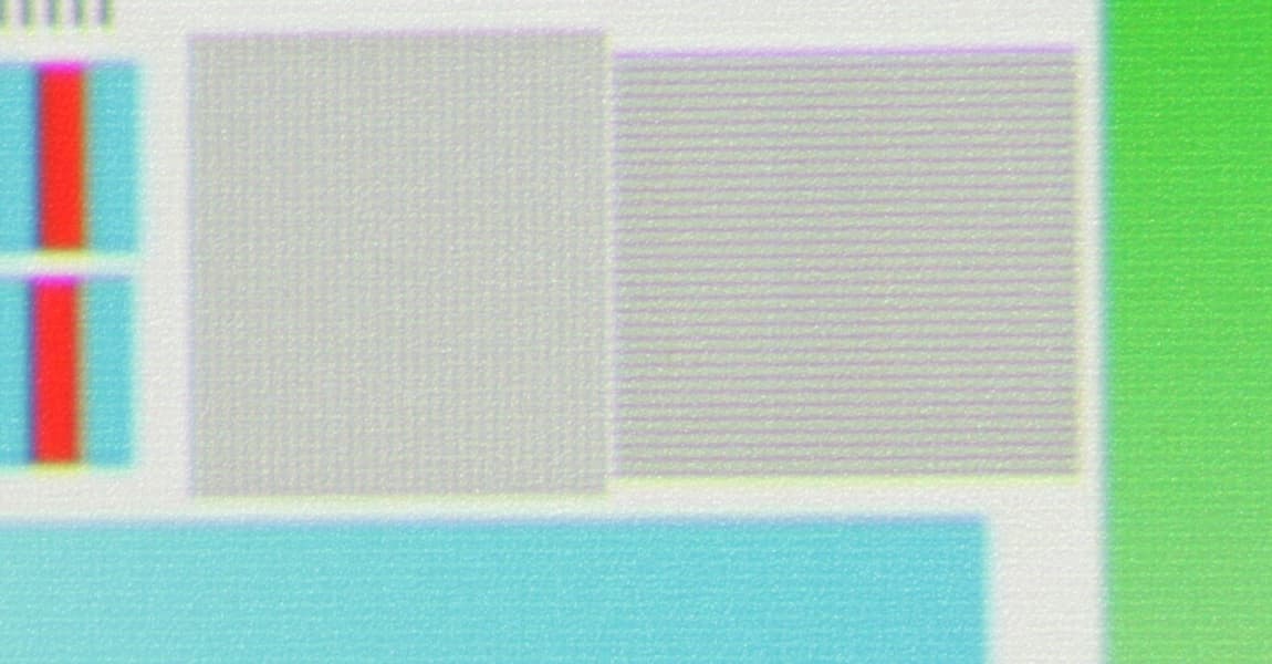 Если это и не истинное 4К-разрешение, то что-то очень близкое к нему. На втором снимке уже можно различить как горизонтальные полоски, так и вертикальные. На первом — только серые квадраты с пиксельной решеткой.