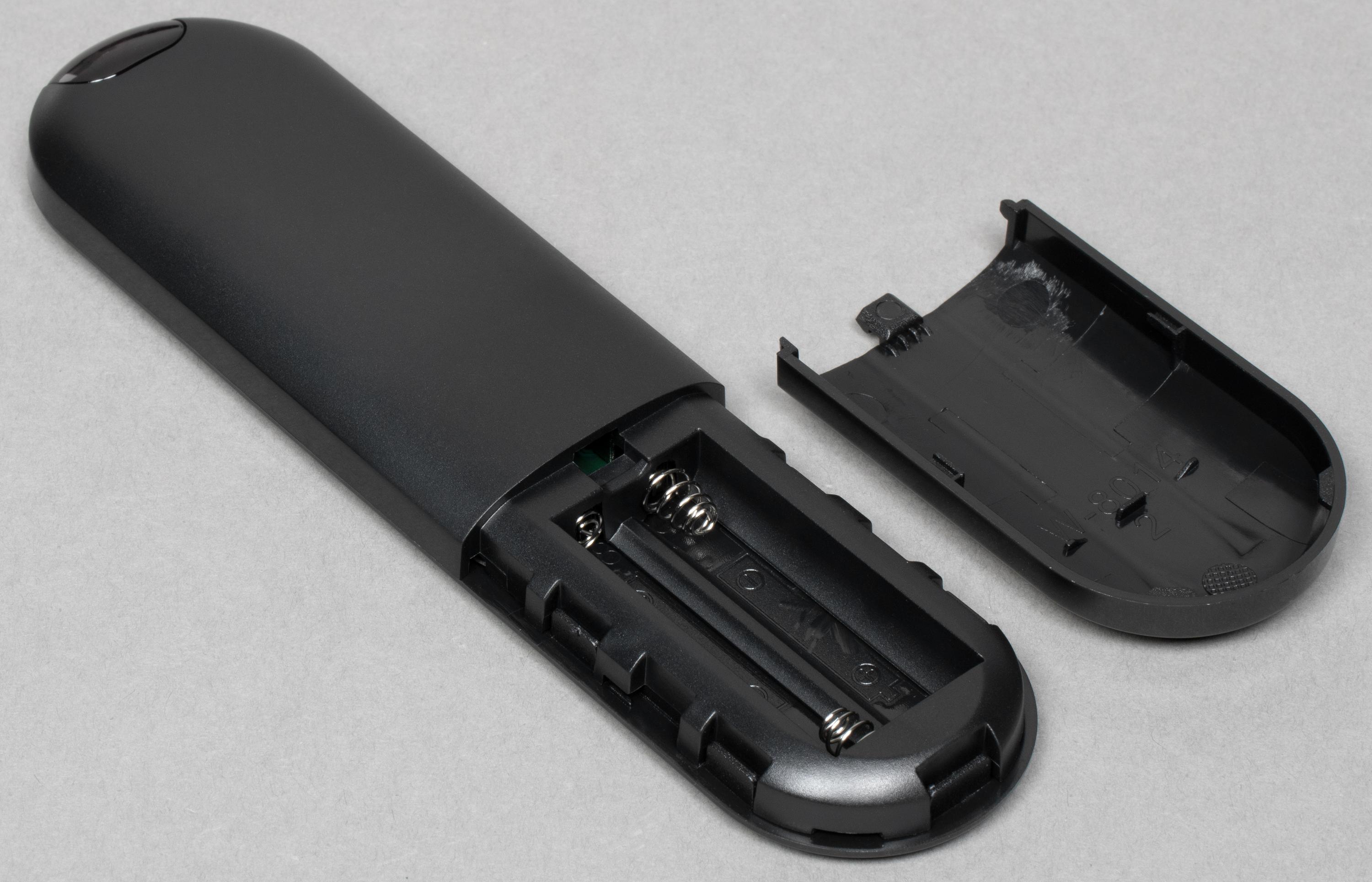 Пульт небольшой и легкий (154×40×15 мм, а с элементами питания он весит 60 г). Корпус пульта изготовлен из черного пластика в основном с матовой поверхностью, кнопки — из резиноподобного пластика. На переднем торце есть вставка из тонированного прозрачного пластика.