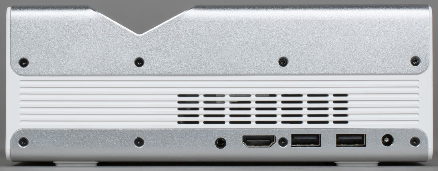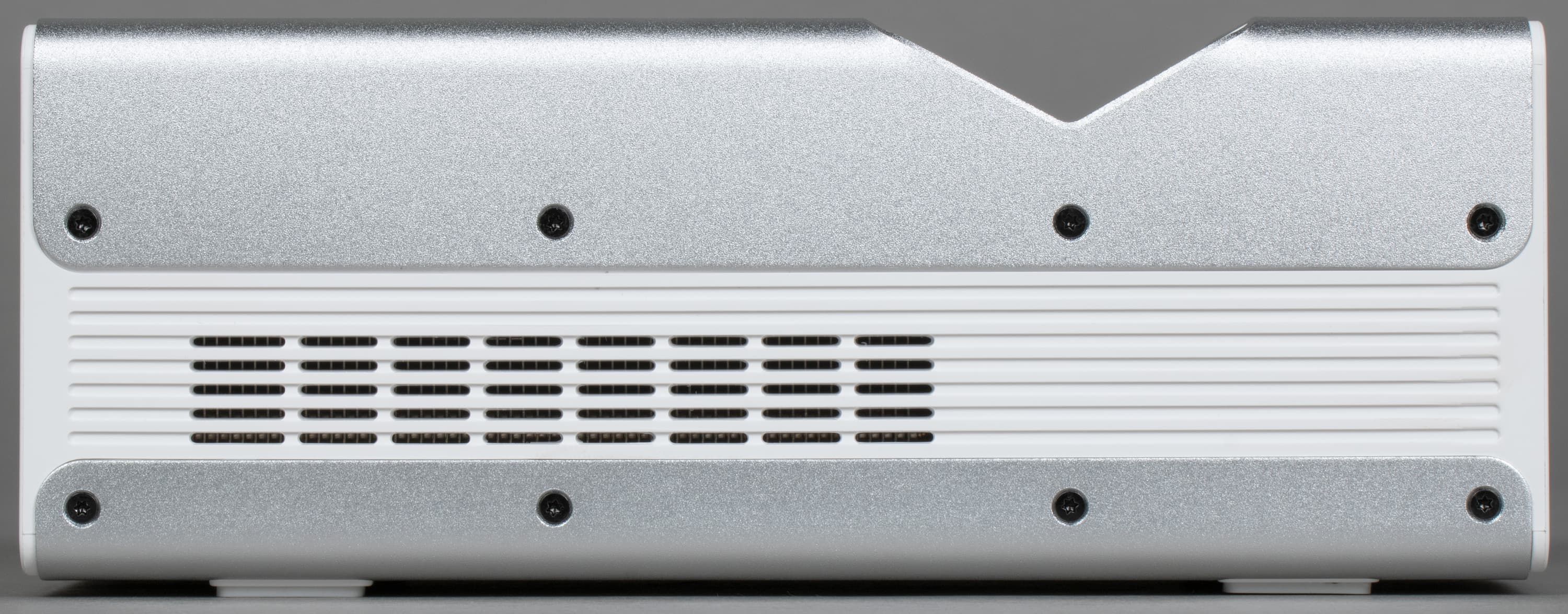 На правой и на левой боковых поверхностях есть вентиляционные решетки, а на правом боку в нижней части еще и расположенные в ряд разъемы.