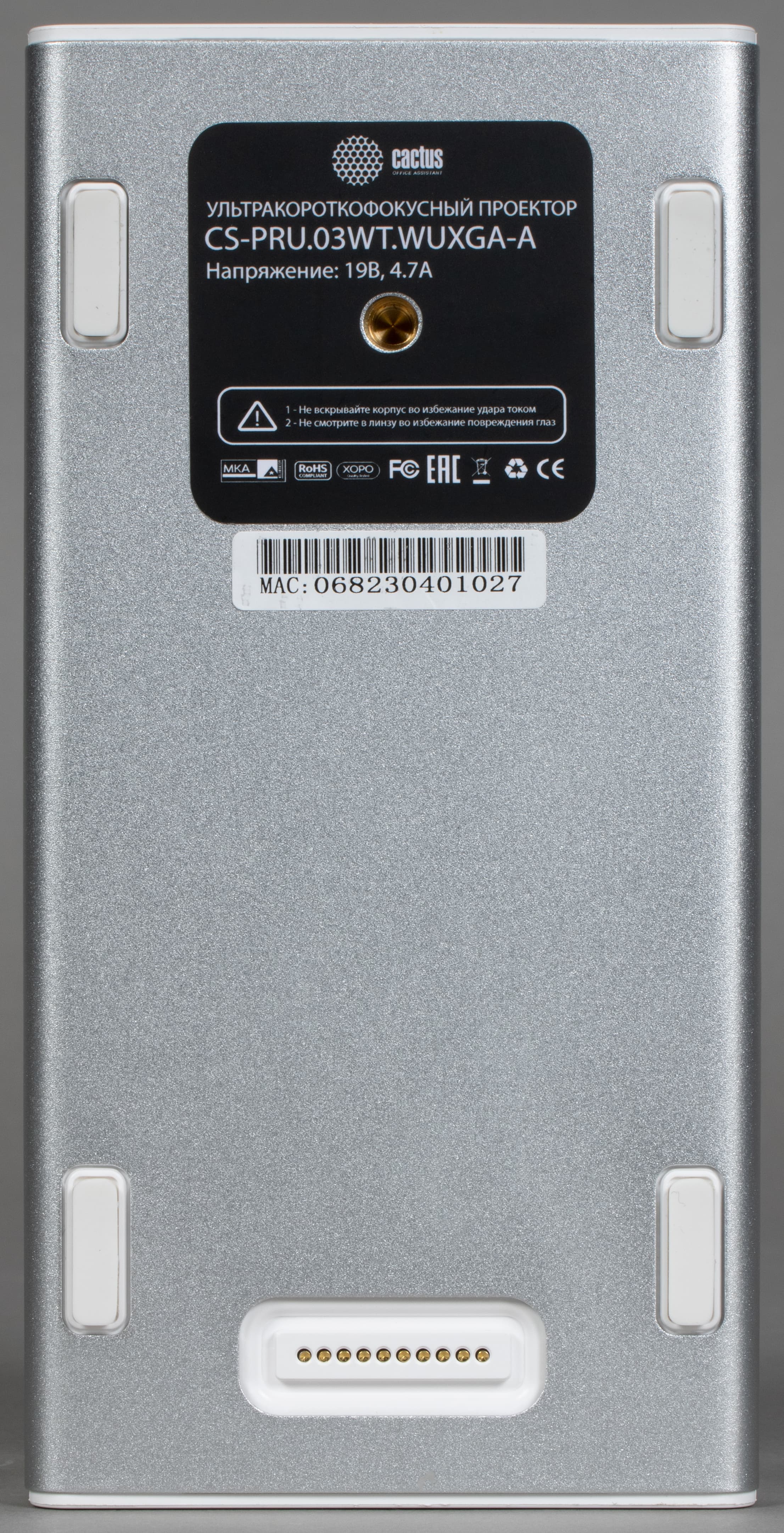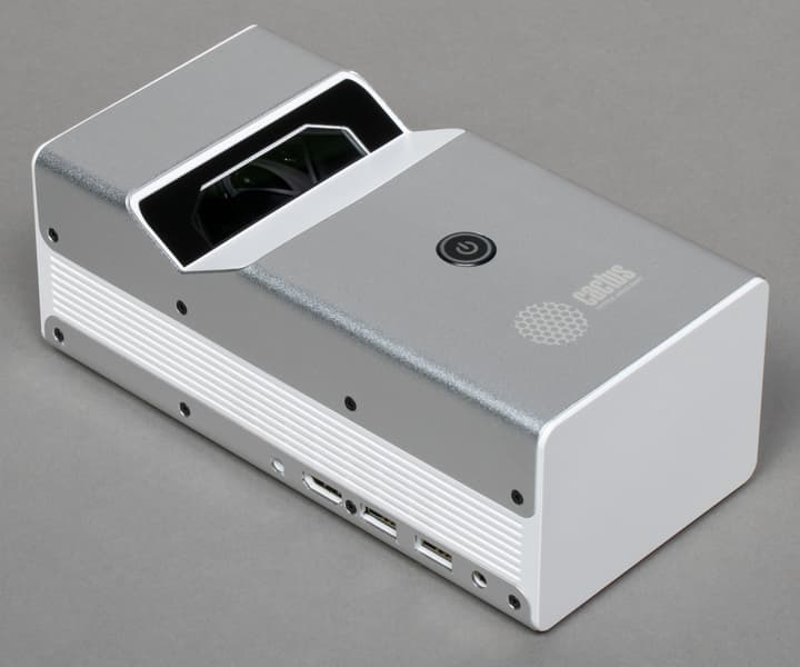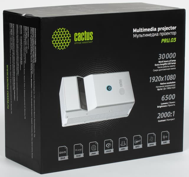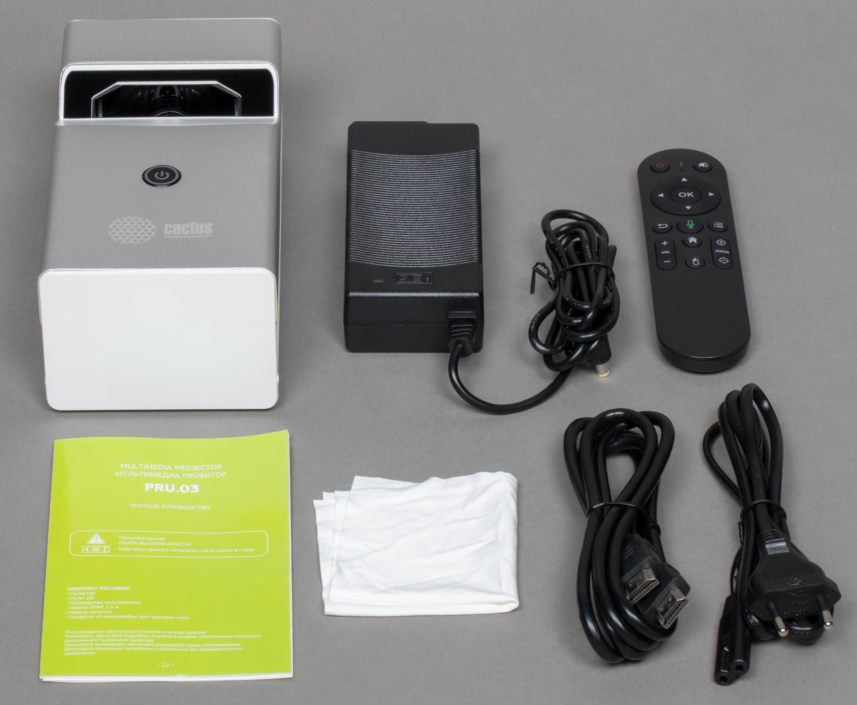 Проектор Cactus PRU.03 — самодостаточное устройство все-в-одном, сочетающее в себе проектор, мультимедийный плеер и акустическую систему. Ультракороткофокусная оптическая система при размещении проектора очень близко к экрану позволяет получить изображение большого размера, что экономит пространство, но предъявляет повышенные требования к качеству экрана. С помощью этого проектора на экране где-то до 1,5 метра шириной можно демонстрировать видео и фотографии, при этом источниками контента могут быть USB-накопители и сетевые сервисы. Также к проектору по HDMI можно подключать внешние источники изображения и звука, только нужно будет заранее убедиться, что источники с проектором совместимы. В данном случае функциональность устройства расширена за счет использования ОС Android, допускающей установку тех приложений, которые больше устроят пользователя по набору функций и оформлению.