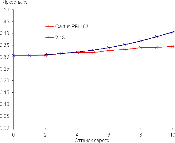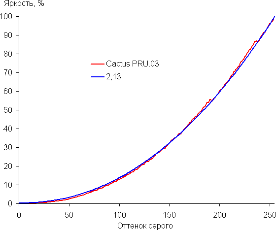 Аппроксимация полученной гамма-кривой дала значение показателя 2,13, что лишь немного ниже стандартного значения 2,2. Реальная гамма-кривая несильно отклоняется от аппроксимирующей функции, что хорошо:
