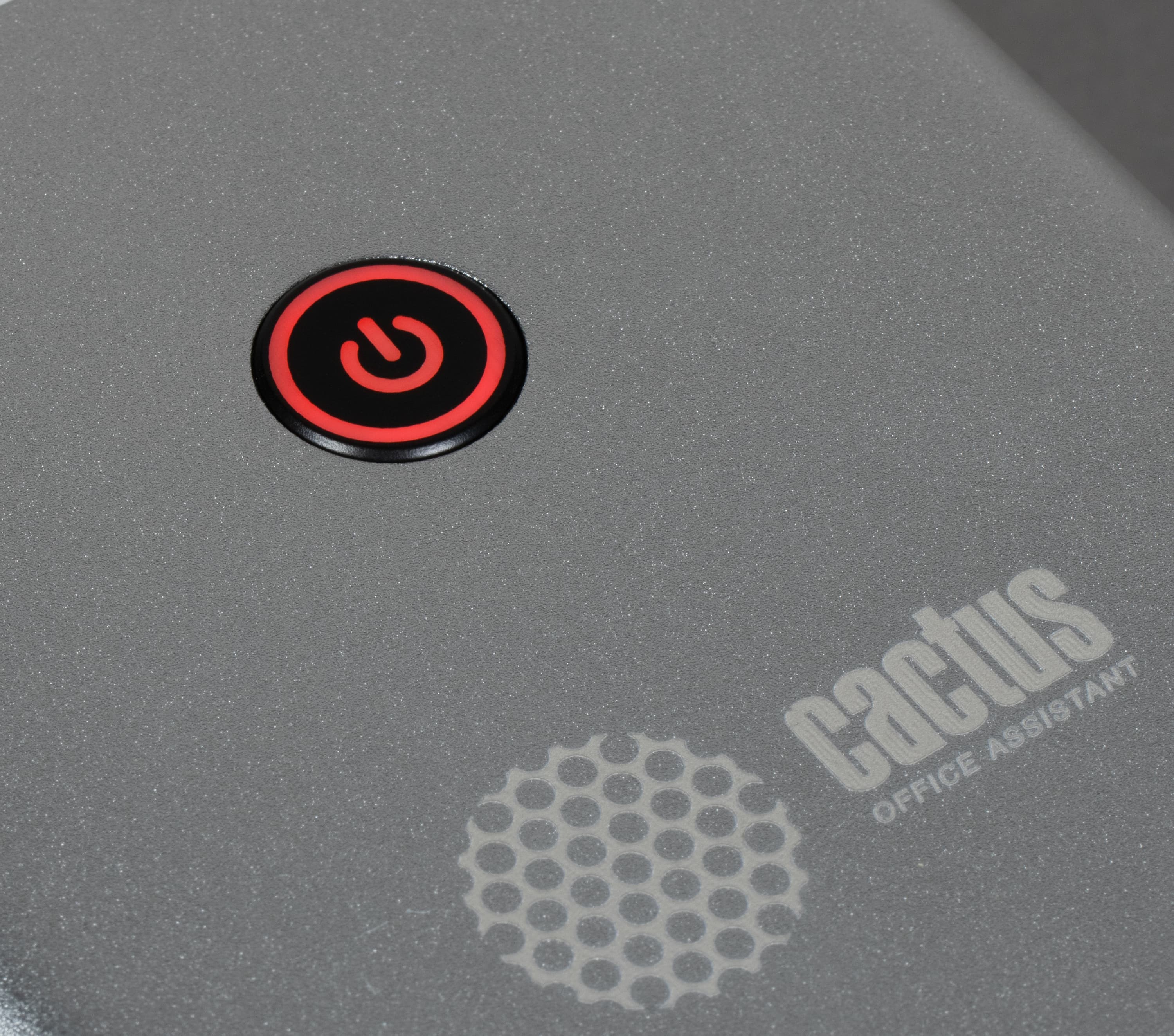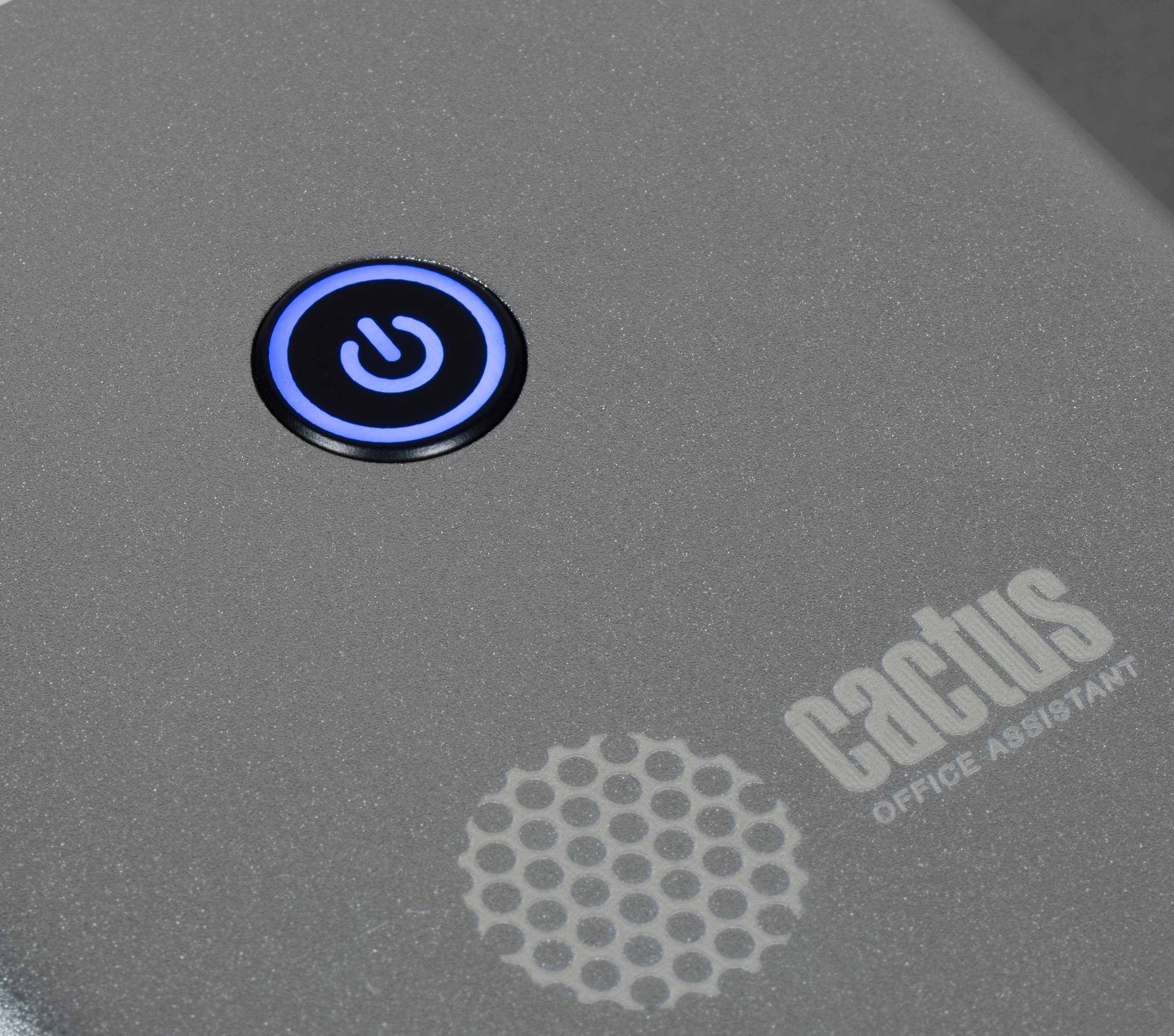 Также сверху находится кнопка питания, подсвечиваемая индикатором состояния — он синий при работе и красный в режиме ожидания.
