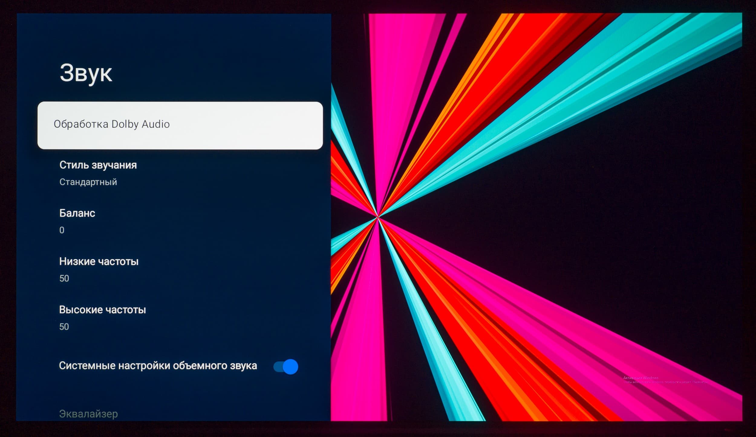 | Акустическая система | стереофонические громкоговорители, система класса 2.1.2 (2×12 Вт + 20 Вт + 2×5 Вт), поддержка Dolby Atmos |