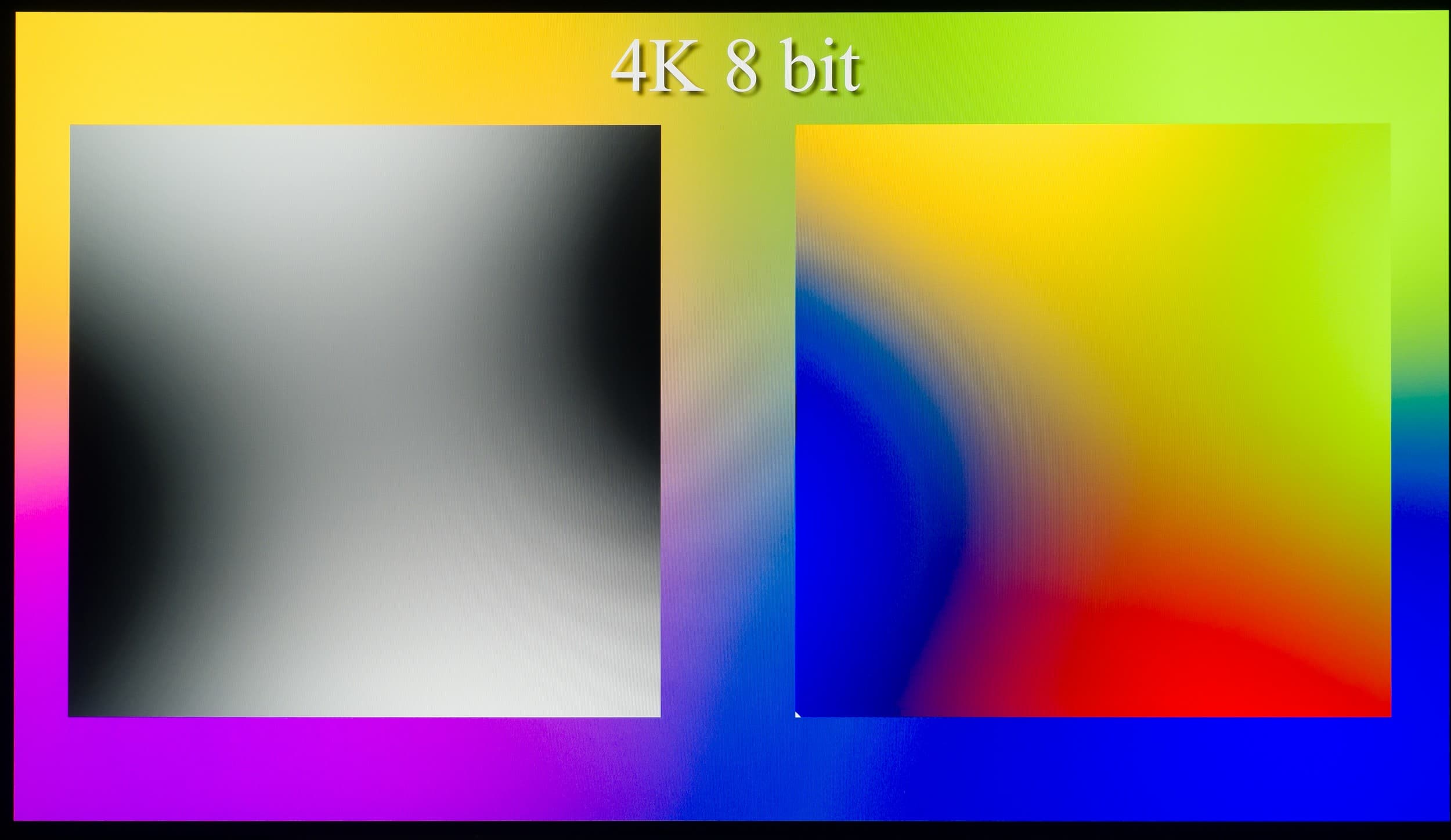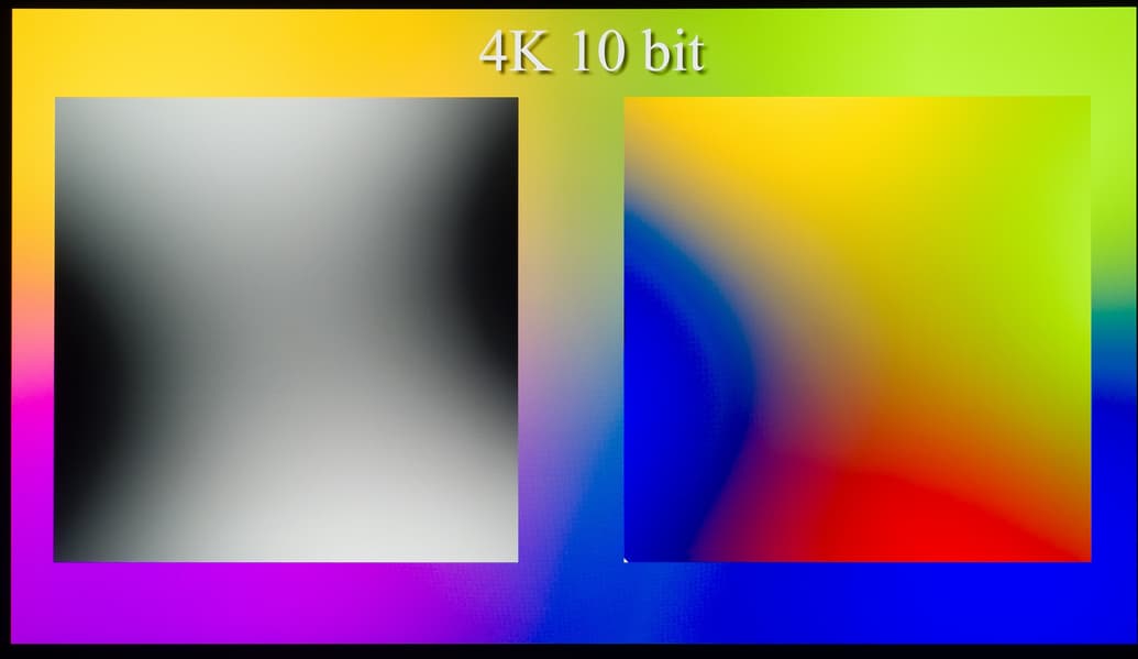 Наглядно видно, что телевизор способен выводить градиенты в 10-битном режиме более качественно, чем в стандартном 8-битном. Но в большей степени это будет актуально при выводе HDR-контента с соответствующими требованиями к ТВ. Использование же программной эмуляции до 12 бит через драйвер видеокарты не приносит видимых преимуществ над 10-битным выводом сигнала.