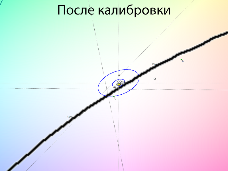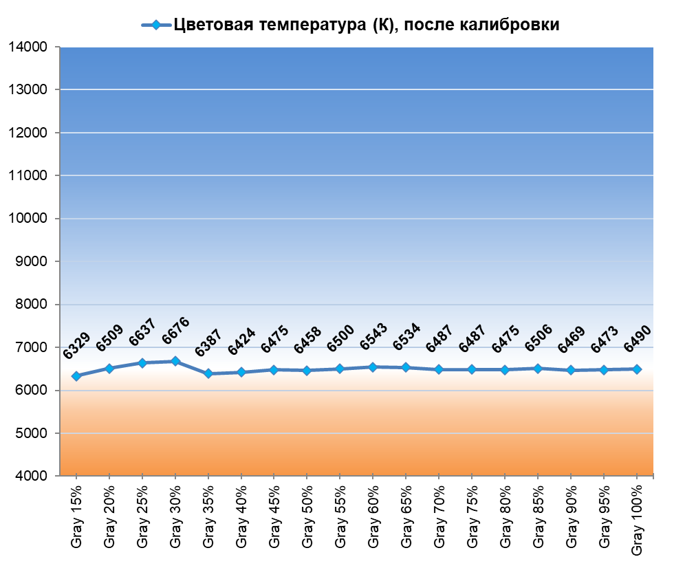 После настройки и калибровки точка белого и все точки серого клина пришли в норму, баланс изображения стал нейтральным — без проявленных паразитных оттенков. Стабильность ЦТ оттенков серого установилась на высоком уровне.
