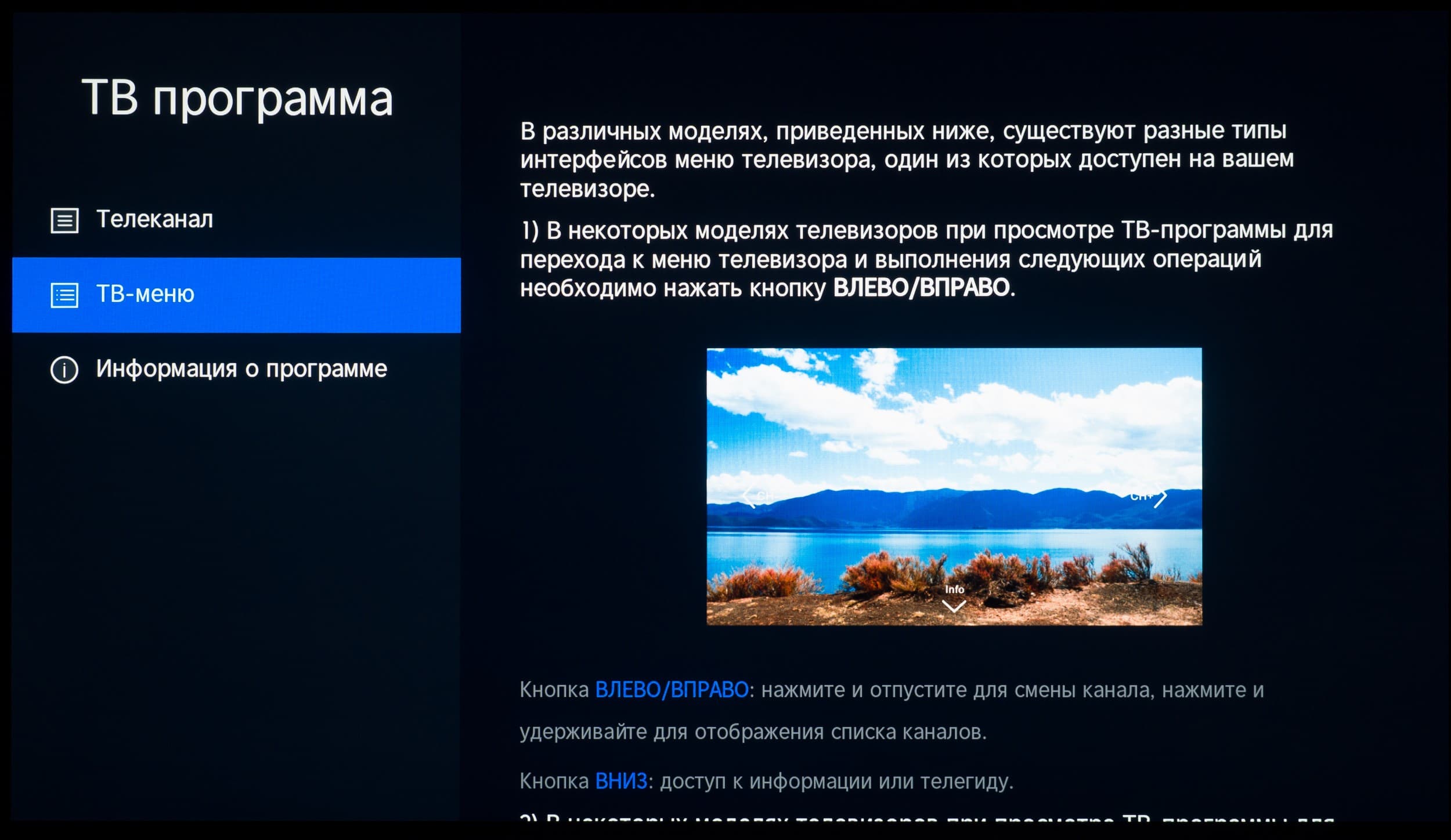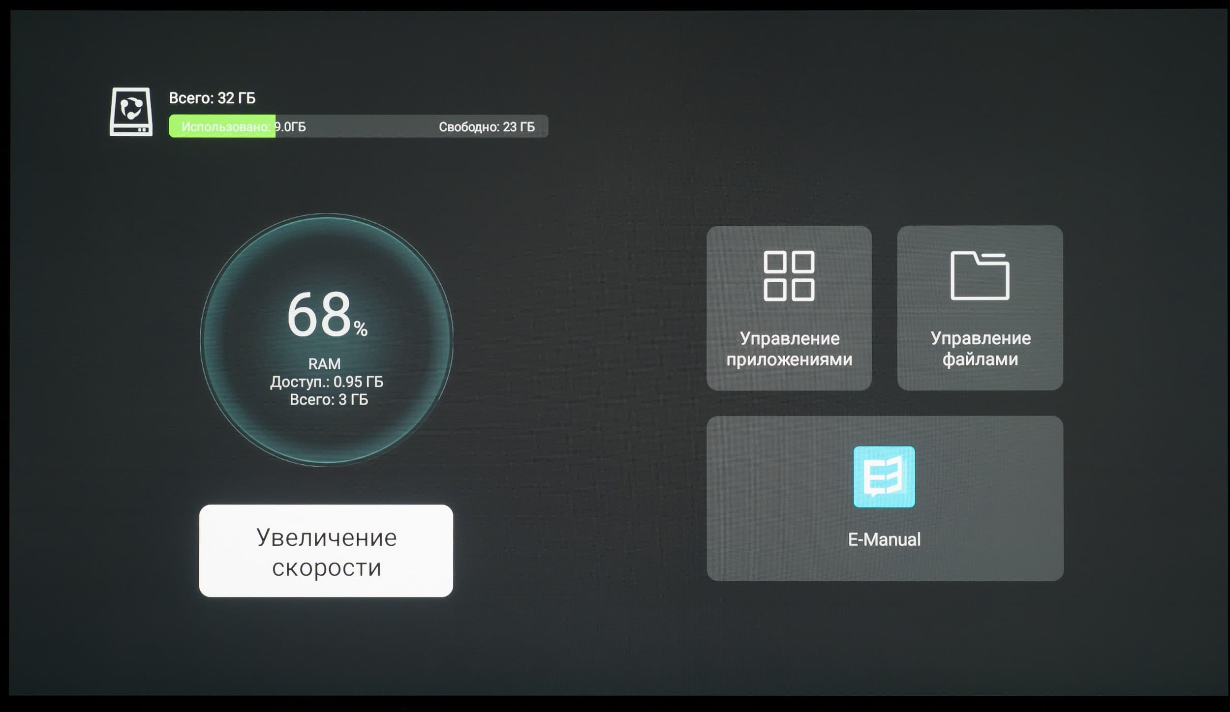 Встроенный в телевизор Помощник ТВ обеспечивает быстрый доступ к автоматической очистке системы, диагностике сетевого подключения и удалению/управлению приложений. Здесь же представлен доступ к электронной инструкции по работе с ТВ, в которой потребитель сможет найти очень подробные и наглядные (с графиками, таблицами, картинками) ответы на многие свои вопросы.