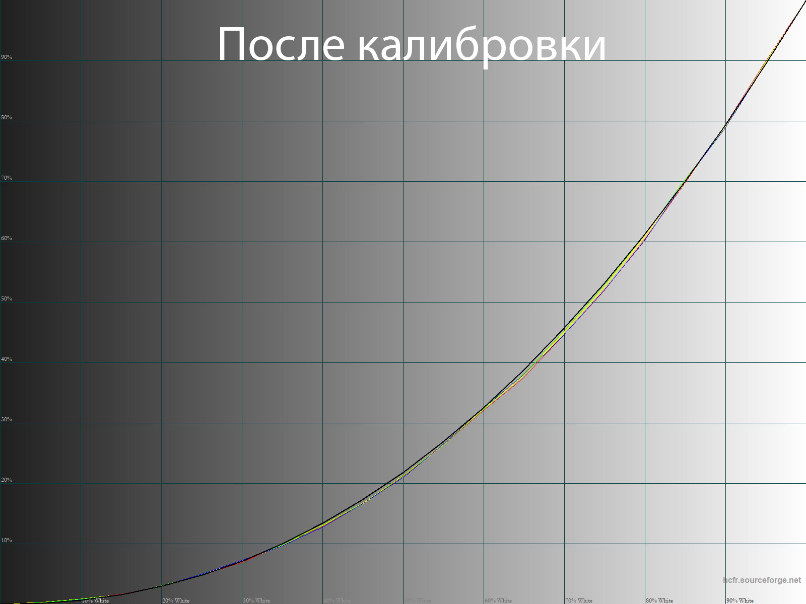После такой настройки мы получили правильный баланс RGB, более высокое соответствие гаммы необходимому референсу и адекватную насыщенность во всем диапазоне. Все остальные коррекции были выполнены с помощью соответствующих правок сигнала видеокарты через ее собственный LUT.