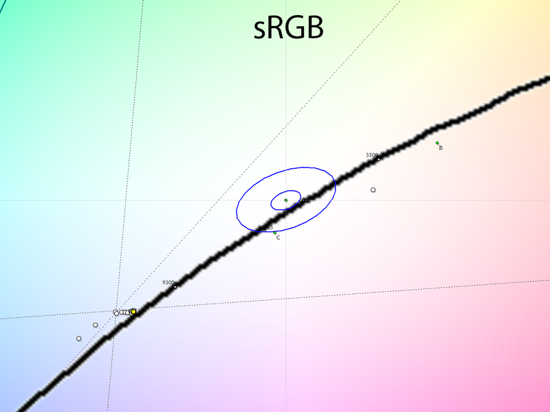 Правки в LUT видеокарты позволили скорректировать недостаточно корректные гамма-кривые и выйти на необходимый уровень точности, пускай и всё еще с некоторым завалом в повышенную контрастность из-за не самой высокой стабильности панели во время ее работы. Среднее значение гаммы составило 2,21.