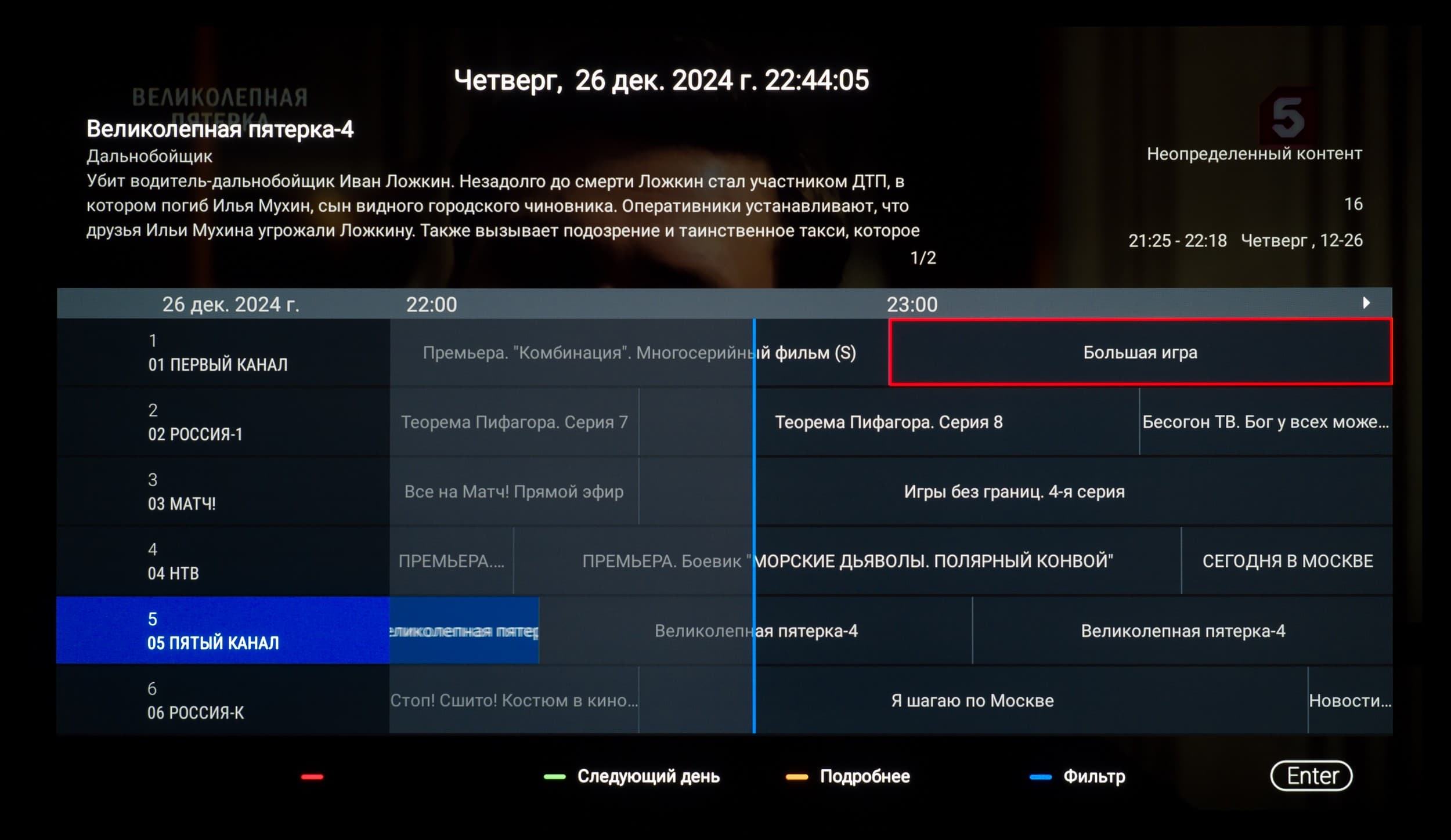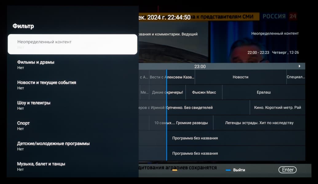 В ряде программ работает голосовой ввод текста. Также есть базовая интеграция с самим ТВ: например, голосом можно менять громкость, выключать/включать звук, открывать меню с настройками, выбирать нужный вход и запускать программу по ее названию (но лишь если вы правильно ее назовете, без излишнего акцента). Еще можно вывести на экран программу телепередач и переключиться на ТВ-канал по его названию.