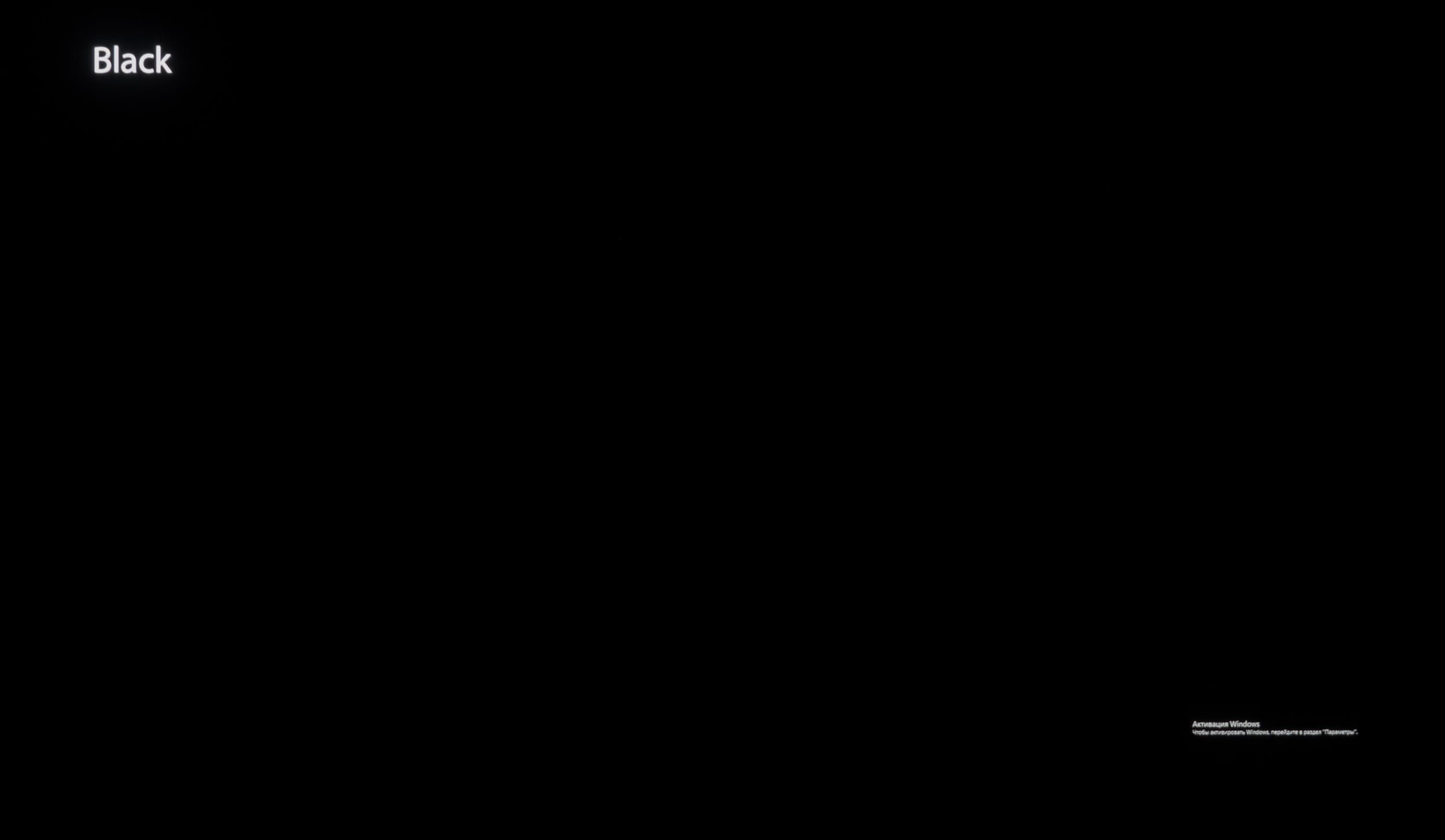 С черным полем ситуация остается типичной для OLED: видна только белая надпись.