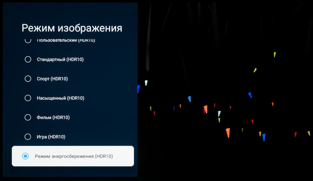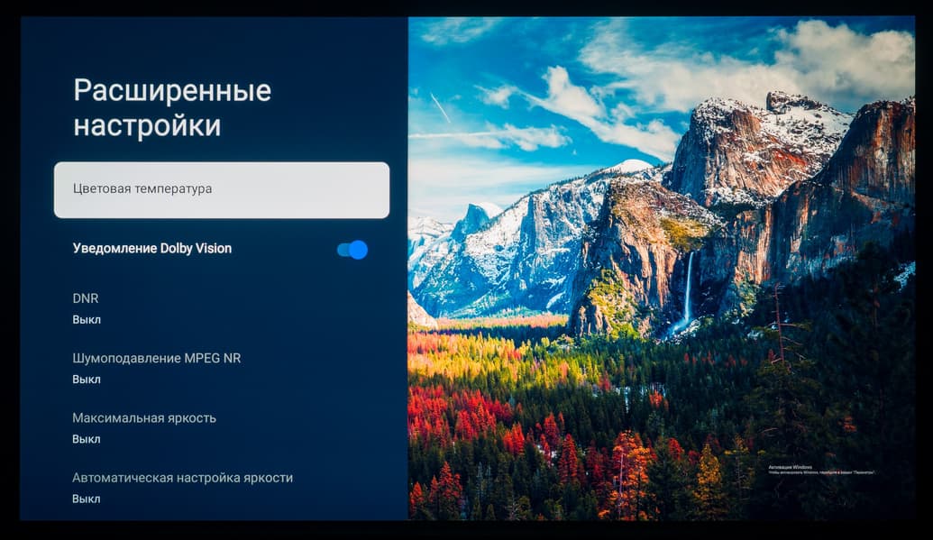 Наполнение контекстного меню может отличается в зависимости от источника изображения, воспроизводимого контента, его формата и доступных HDR-метаданных. В некоторых случаях часть настроек, ответственных за цветопередачу и качество изображения, может быть недоступна пользователю. Также включение некоторых функций приводит к ограничению работы других, они становятся недоступны (заблокированы). Впрочем, в случае с Google TV/Android TV таких ограничений всё же меньше, чем на других платформах, это факт.