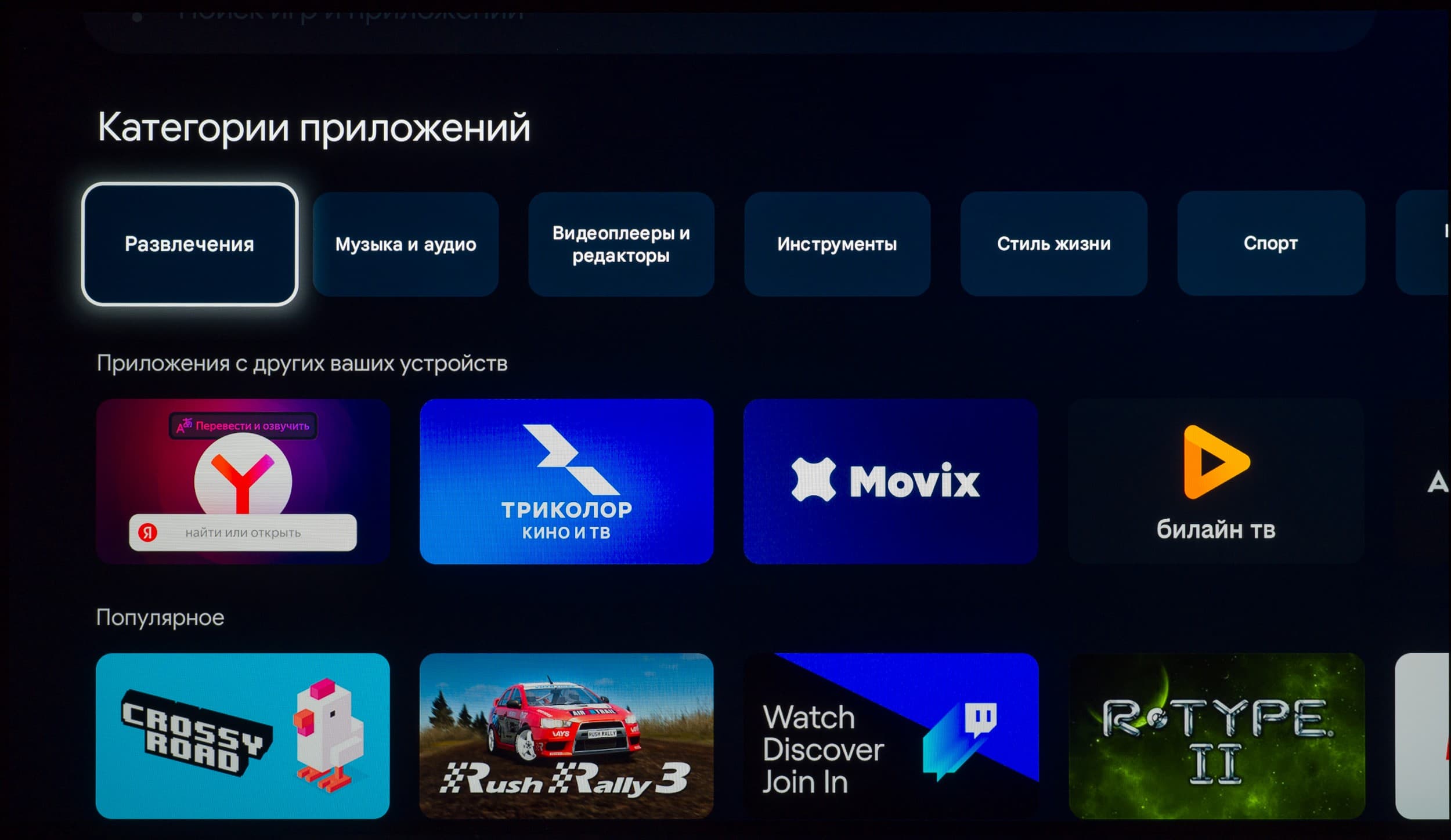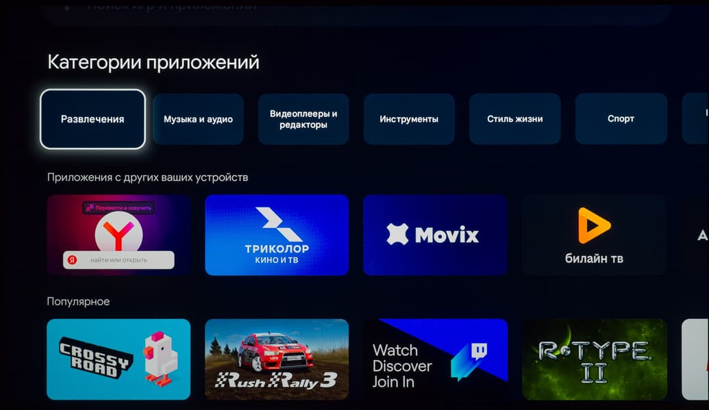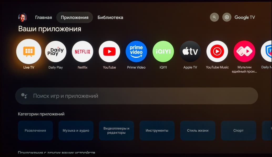 В самом же Google Play официально доступных приложений для платформы Google TV/Android TV не так много, но пользователя это практически не ограничивает, ведь телевизор способен переварить многие подходящие для используемой программно-аппаратной платформы APK-инсталляторы. Главное — чтобы на нужное вам приложение хватило мощности встроенной в ТВ начинки.