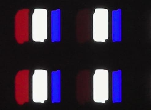 Полноцветное изображение создается с помощью субпикселей четырех цветов — красного (R), зеленого (G), синего (B) в равном количестве и дополнительного белого (W) — для увеличения показателей максимальной яркости.