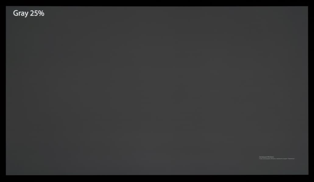 Если посмотреть на неравномерность при переходе к более темным серым оттенкам с их выводом на всю площадь экрана ТВ, то лишь на самых темных из них можно заметить слабовыраженный высокочастотный шум (эффект грязного экрана), что свойственно подавляющему числу OLED-экранов.