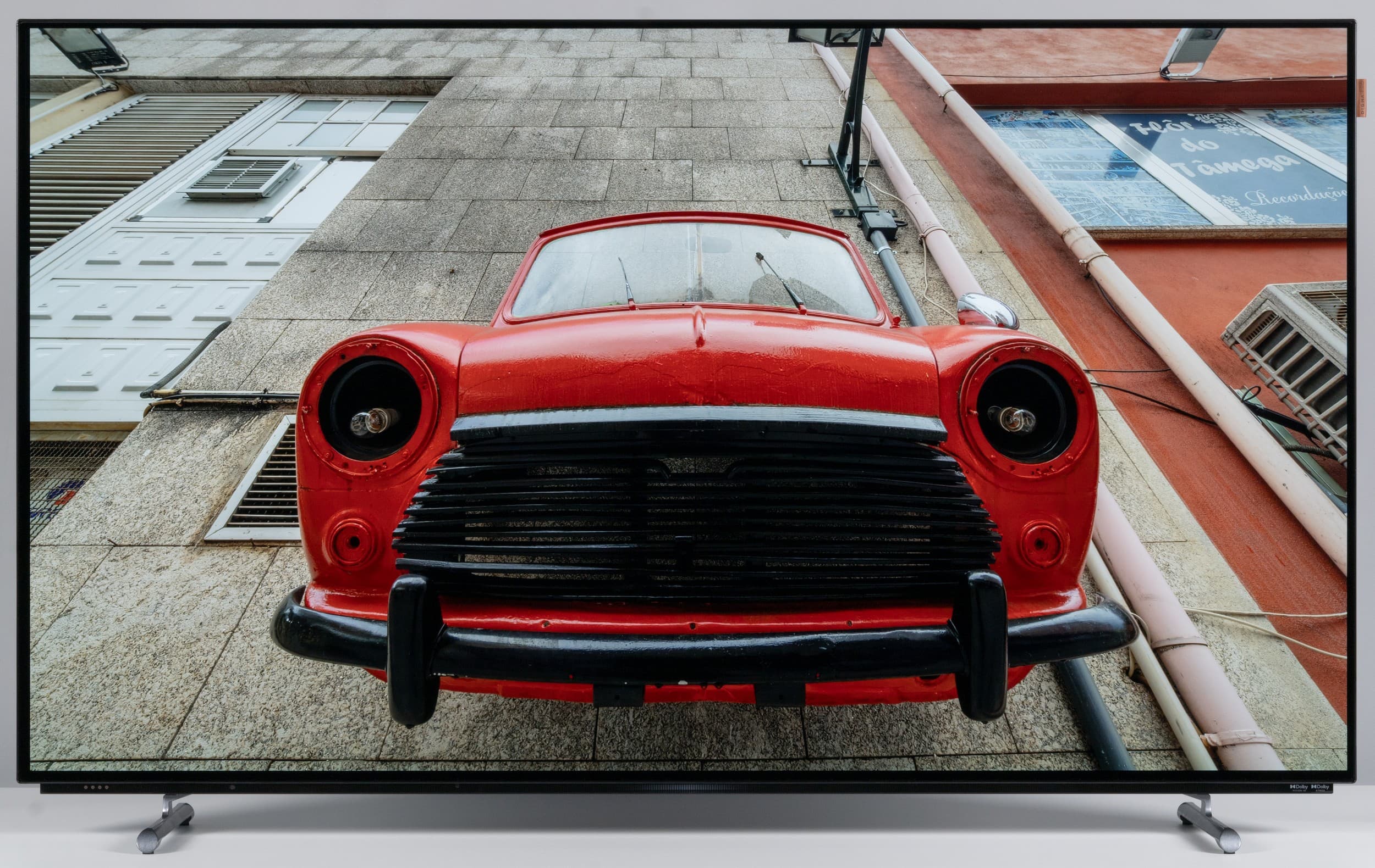 Нерабочие поля экрана для такой диагонали узкие, но скорее всего типичные для почти всех OLED с диагональю 55 дюймов: от границы области отображения до внешних границ — порядка 5-5,5 мм сверху и с боков и 10 мм снизу + по 2,5 мм на металлическое обрамление.