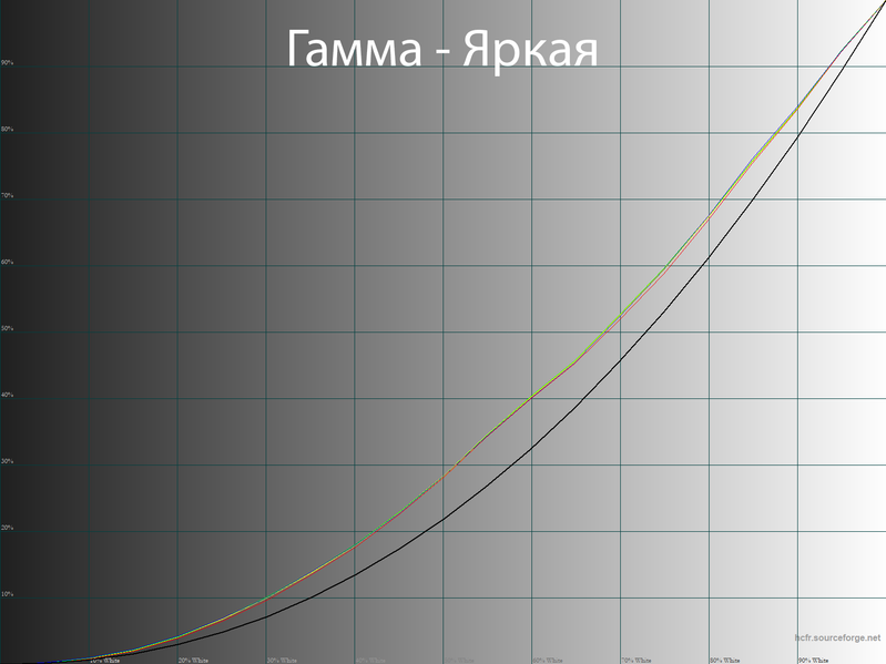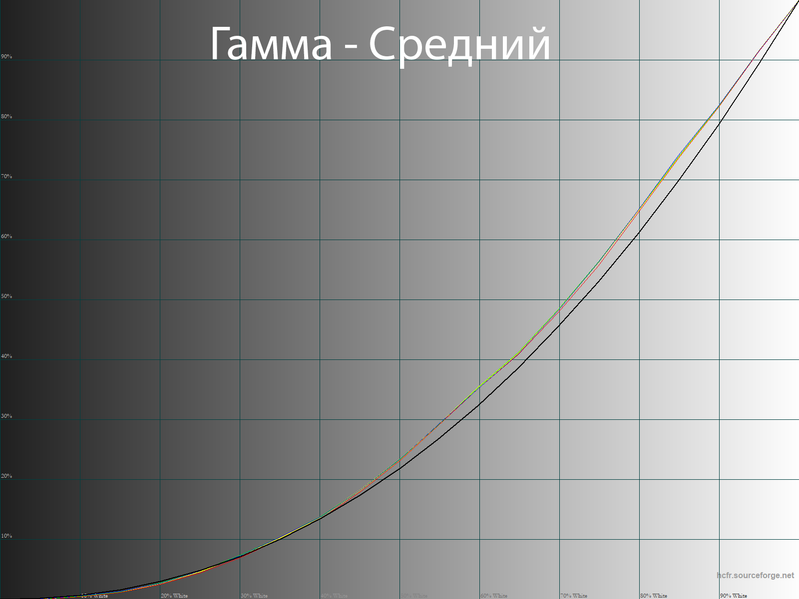 Для быстрой настройки, в отсутствие необходимости использовать подключение к ПК, потребитель может воспользоваться доступными режимами «Гамма», быстро корректирующими реальный контраст изображения. Среди доступных режимов по умолчанию выбран «Средний». На фоне двух других именно он выглядит оптимальным для постоянного использования и дальнейшей настройки. Если же есть желание несколько снизить или увеличить визуальную контрастность картинки на экране телевизора, то можете воспользоваться режимами «Яркая» (гамма 1,85) и «Темная» (гамма 2,39).