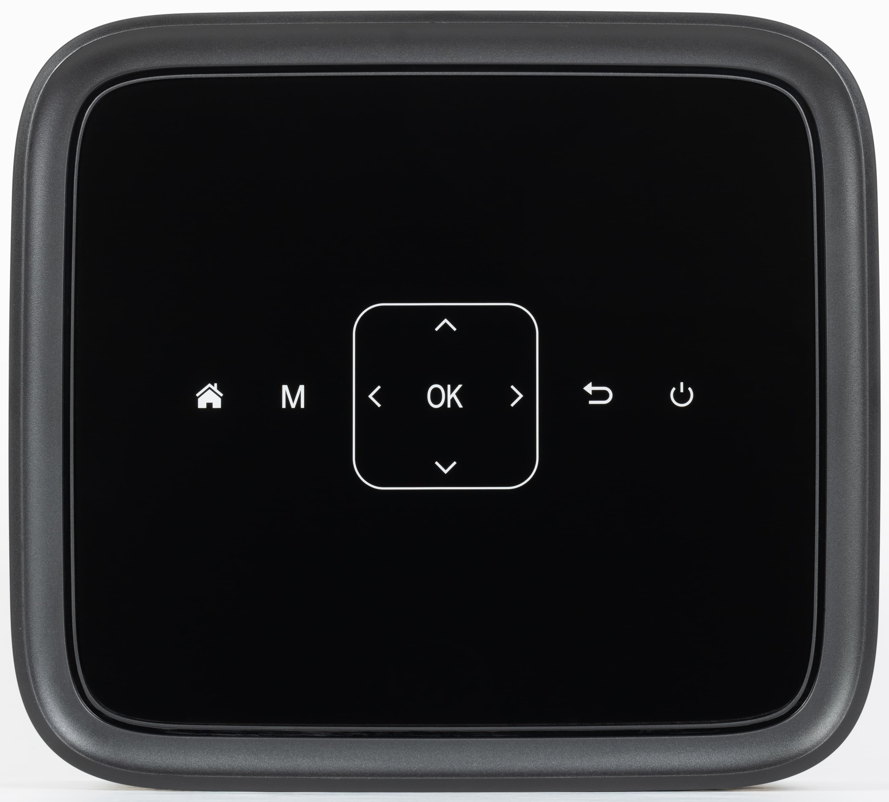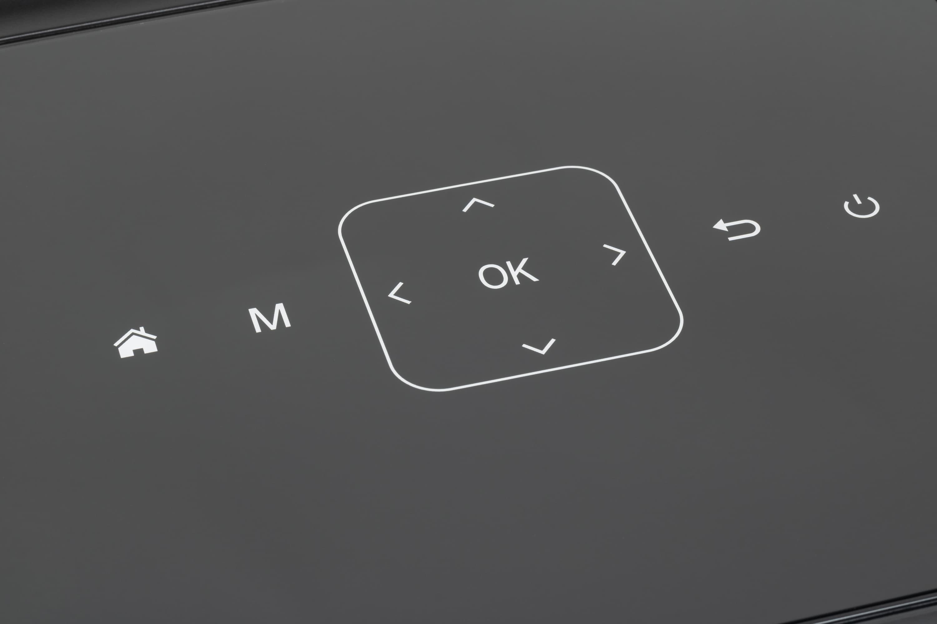 Обозначения кнопок контрастные и достаточно крупные. Пульт работает по ИК. Также никто не мешает подключить к проектору настоящие клавиатуру и мышь (по USB или по Bluetooth). Поддерживается прокрутка колесиком. Нажатие на правую кнопку мыши соответствует отмене действия или возврату назад. К сожалению, задержка перемещения курсора мыши относительно движения самой мышью в случае подключения по Bluetooth очень большая. Нужно отметить, что в целом штатный интерфейс самого проектора хорошо оптимизирован для использования только курсорных кнопок комплектного пульта ДУ.