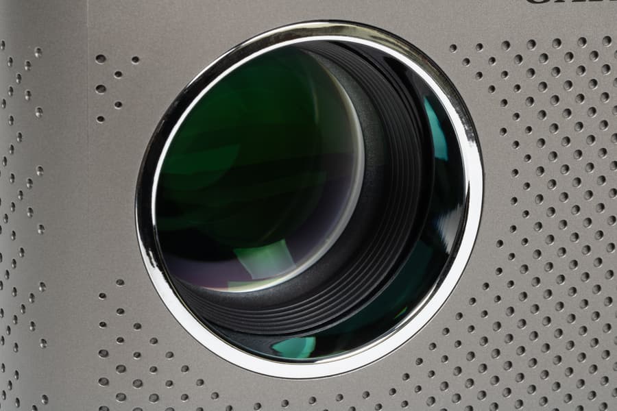 Дизайн типичен для некороткофокусных проекторов со встроенной акустической системой — это небольшой кубик.