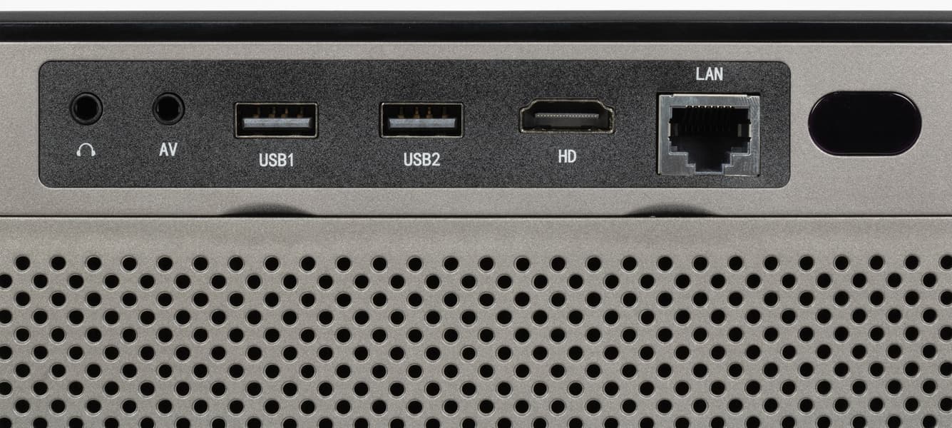 Таблица с характеристиками в начале статьи дает представление о коммуникационных возможностях проектора. Разъемы размещены достаточно свободно. Звук на внешнее устройство можно передавать по Bluetooth. Для проверки мы успешно подключились к нашей тестовой беспроводной колонке Sven PS-200BL.