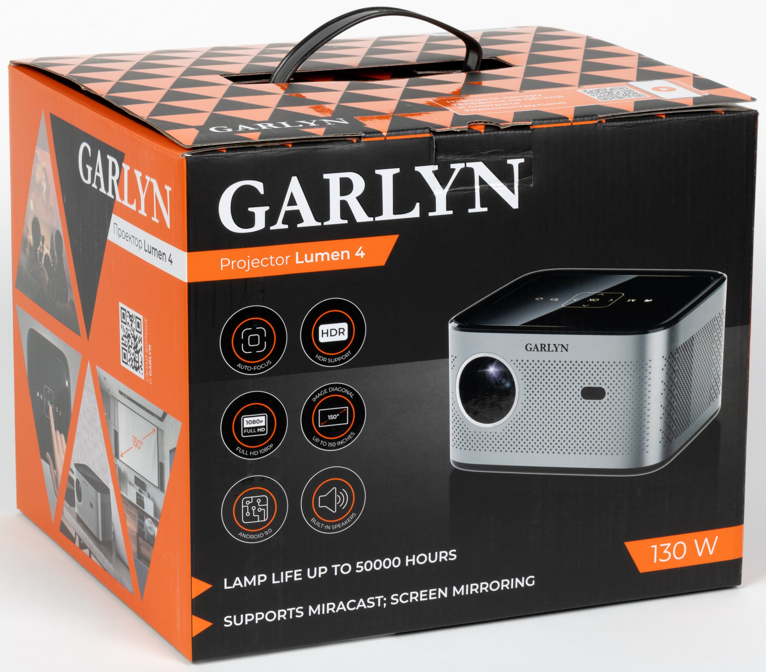 Garlyn Lumen 4 — это устройство всё-в-одном, сочетающее в себе проектор, мультимедийный плеер и акустическую систему. С его помощью на довольно большом экране (до 100 дюймов в полной темноте) можно демонстрировать видео и фотографии, при этом источниками контента могут быть USB-накопители, мобильные устройства и сетевые сервисы. Также к проектору можно подключать по HDMI внешние источники изображения и звука. Для игр проектор не подходит из-за слишком большой задержки вывода. В данном случае функциональность устройства может быть расширена за счет установки тех приложений, которые больше устроят пользователя по набору функций и оформлению. При выборе проектора необходимо учитывать довольно высокий уровень шума от системы охлаждения, хорошо хоть звук этот ровный и раздражения не вызывает.