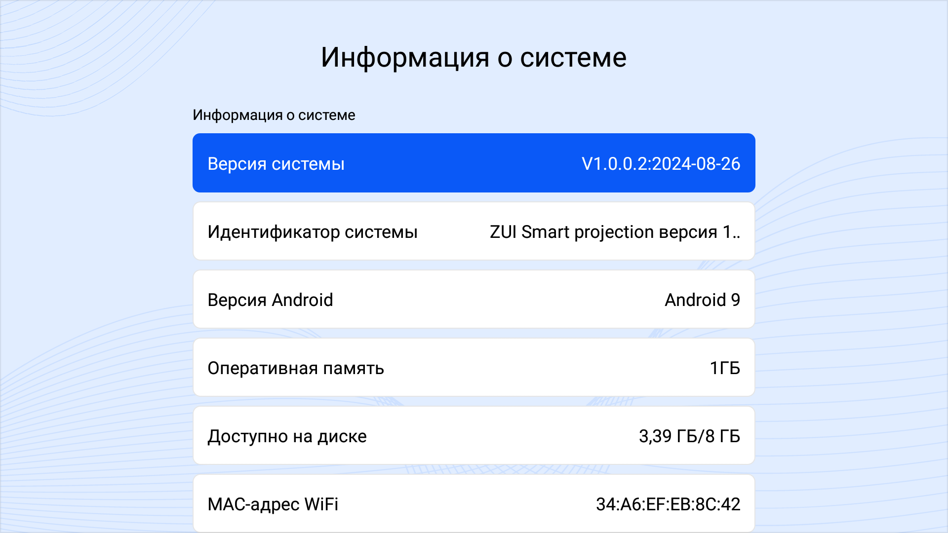 Программной платформой для этого проектора служит операционная система, основанная на Android версии 9.0.